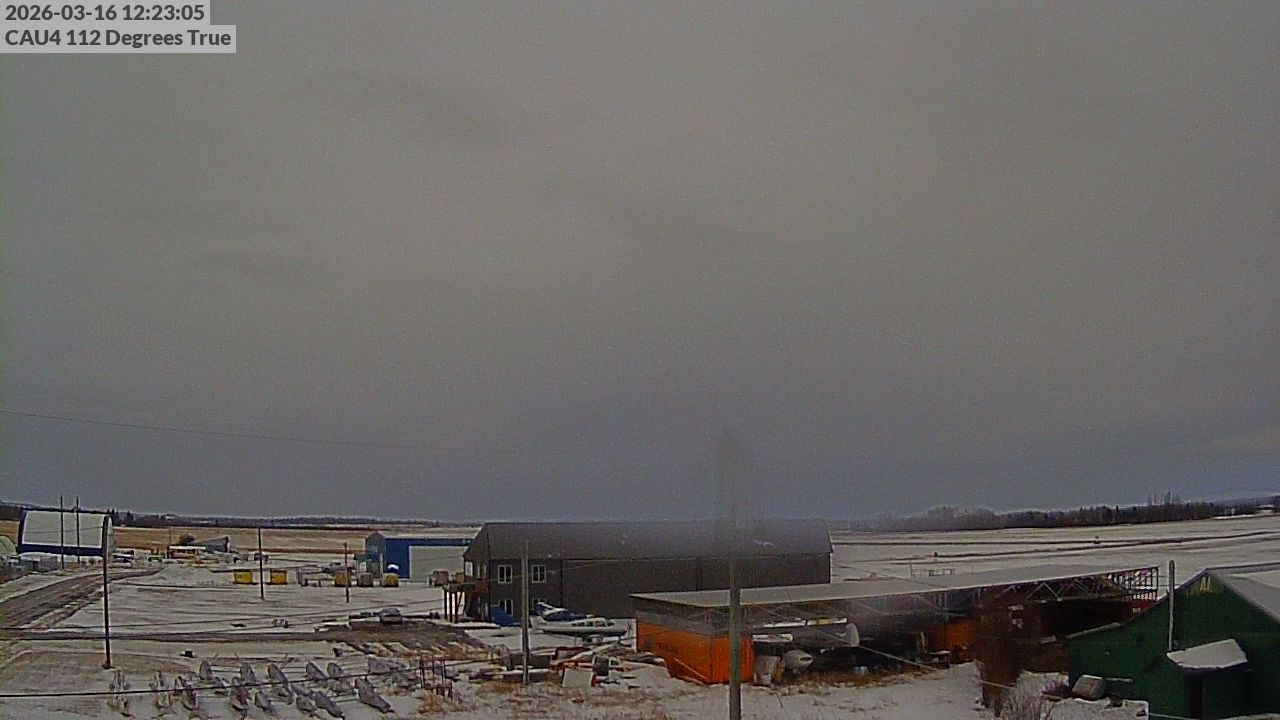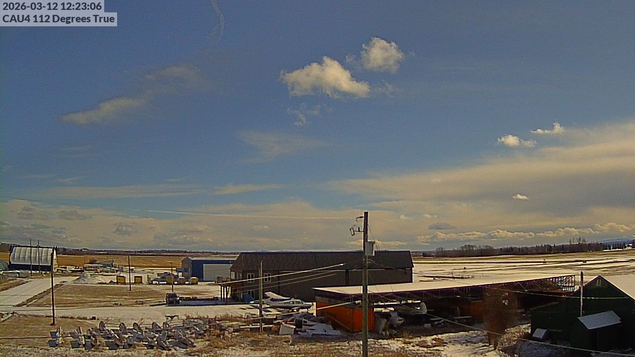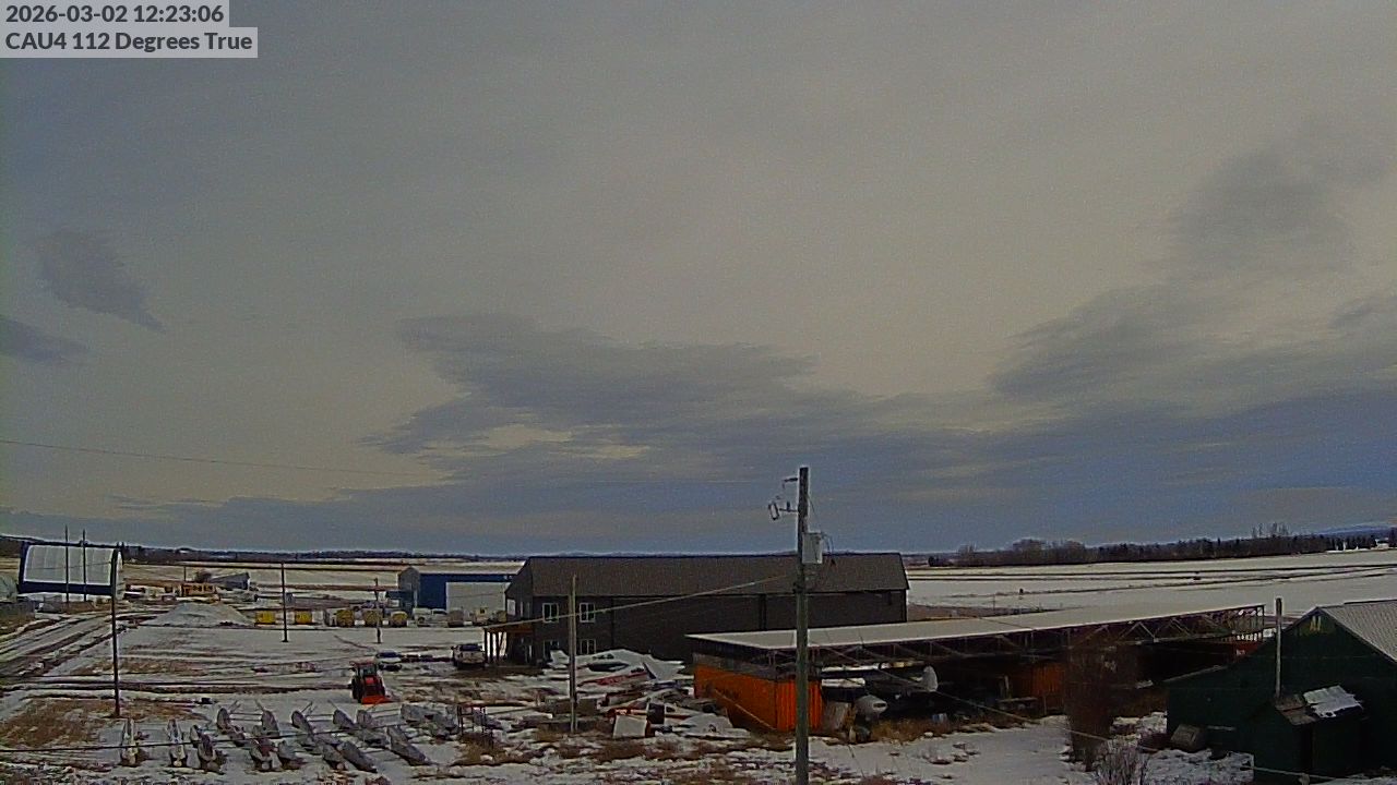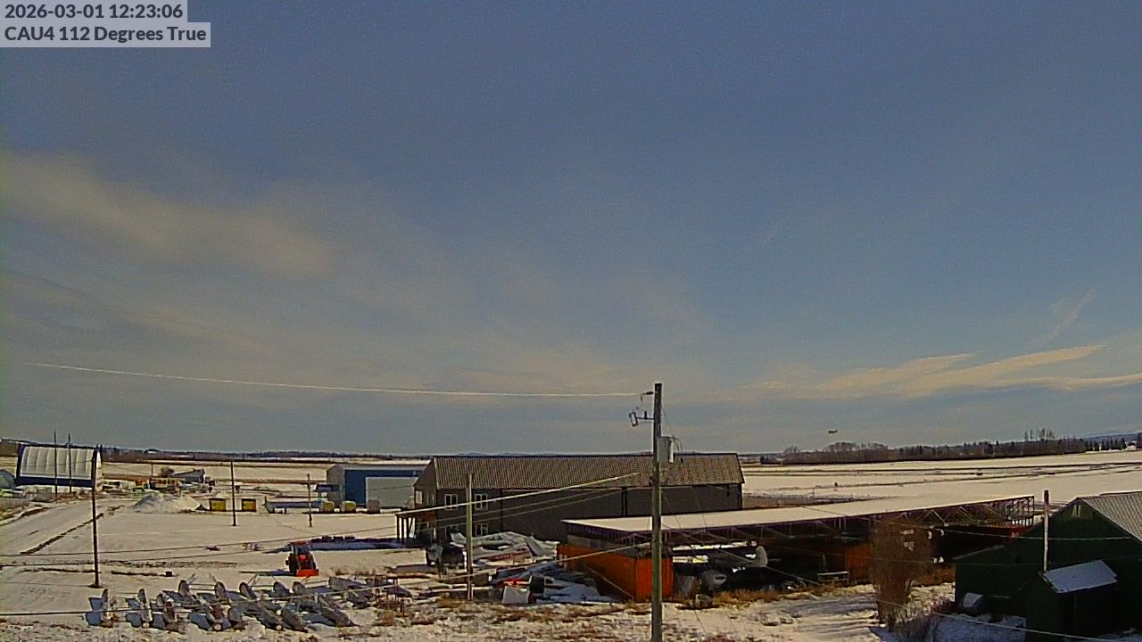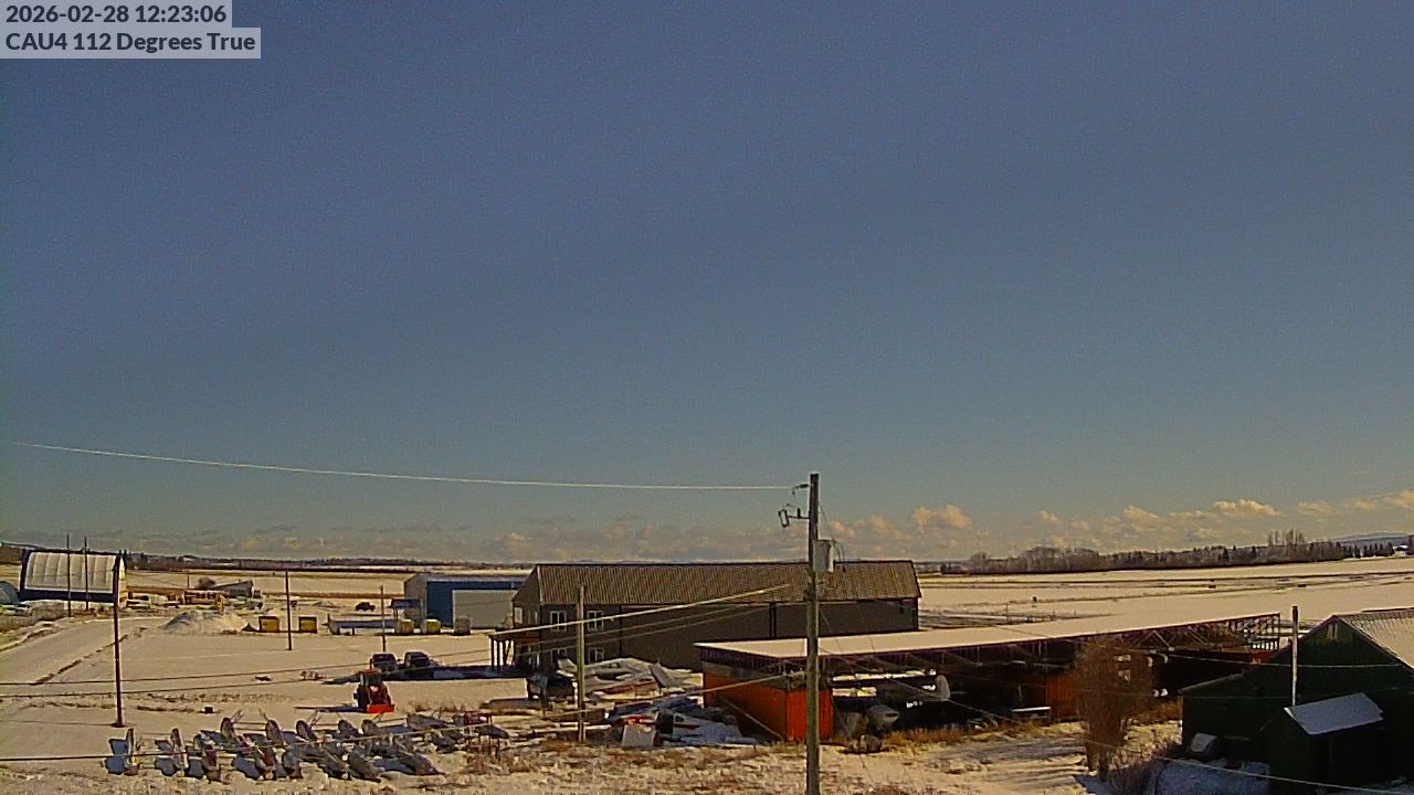 - Blick auf die Gebäude des Vanderhoof Airport.