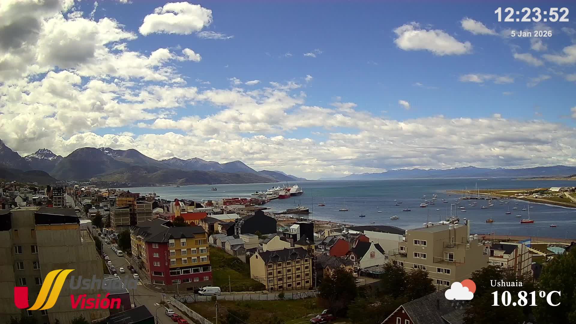 Ushuaia, Argentinien - 521.1 km von Amarga: Hafen von Ushuaia - Blick über den Hafen von Ushuaia, Provinz Tierra del Fuego.