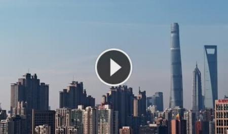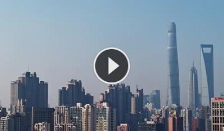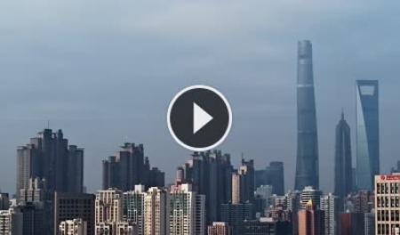 - Panoramablick auf Shanghai mit Lujiazui, Shanghai Tower, Shanghai World Financial Center und Jin Mao Tower.