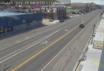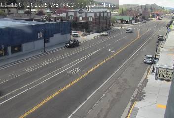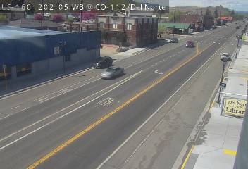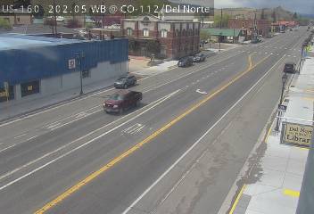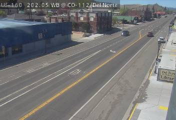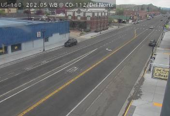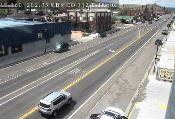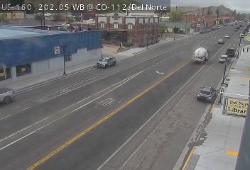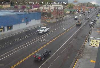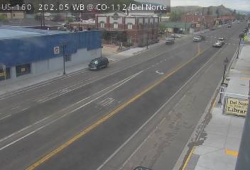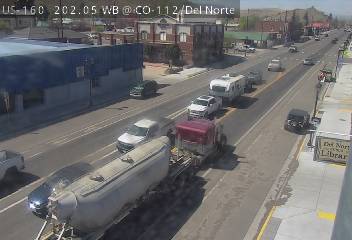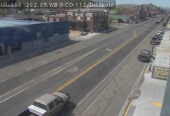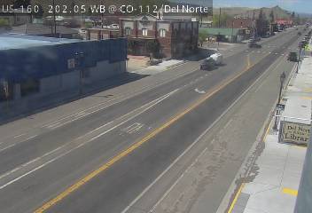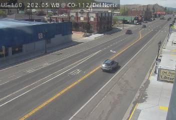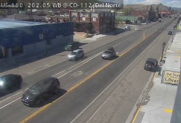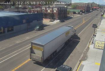 Del Norte, Colorado, USA - 152.9 km von Aguilar: Verkehr US 160 MP 202.05 WB at CO 112/Oak St in Del Norte