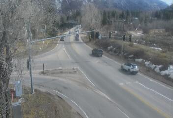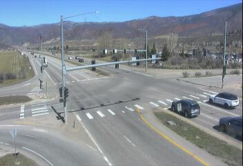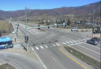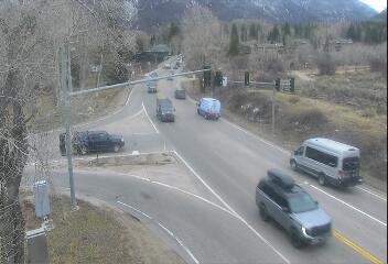 Woody Creek, Colorado, USA - 25.5 km von Ashcroft: Verkehr CO 82 MP 035.30 EB at Brush Creek Rd in Snowmass