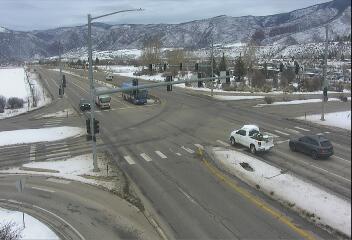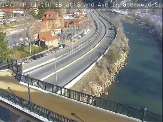 Glenwood Springs, Colorado, USA - 5 km von Cardiff: Verkehr I-70 MP 116.60 EB at Grand Ave in Glenwood Springs