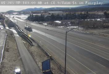 Fairplay, Colorado, USA - 77 km von Lone Pine Estates: Verkehr US 285 MP 183.00 SB at CO 9/Main St in Fairplay
