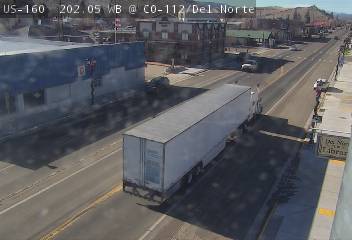 Del Norte, Colorado, USA - 153.4 km von Lynn: Verkehr US 160 MP 202.05 WB at CO 112/Oak St in Del Norte
