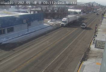 Del Norte, Colorado, USA - 55.8 km von Weaver (historical): Verkehr US 160 MP 202.05 WB at CO 112/Oak St in Del Norte