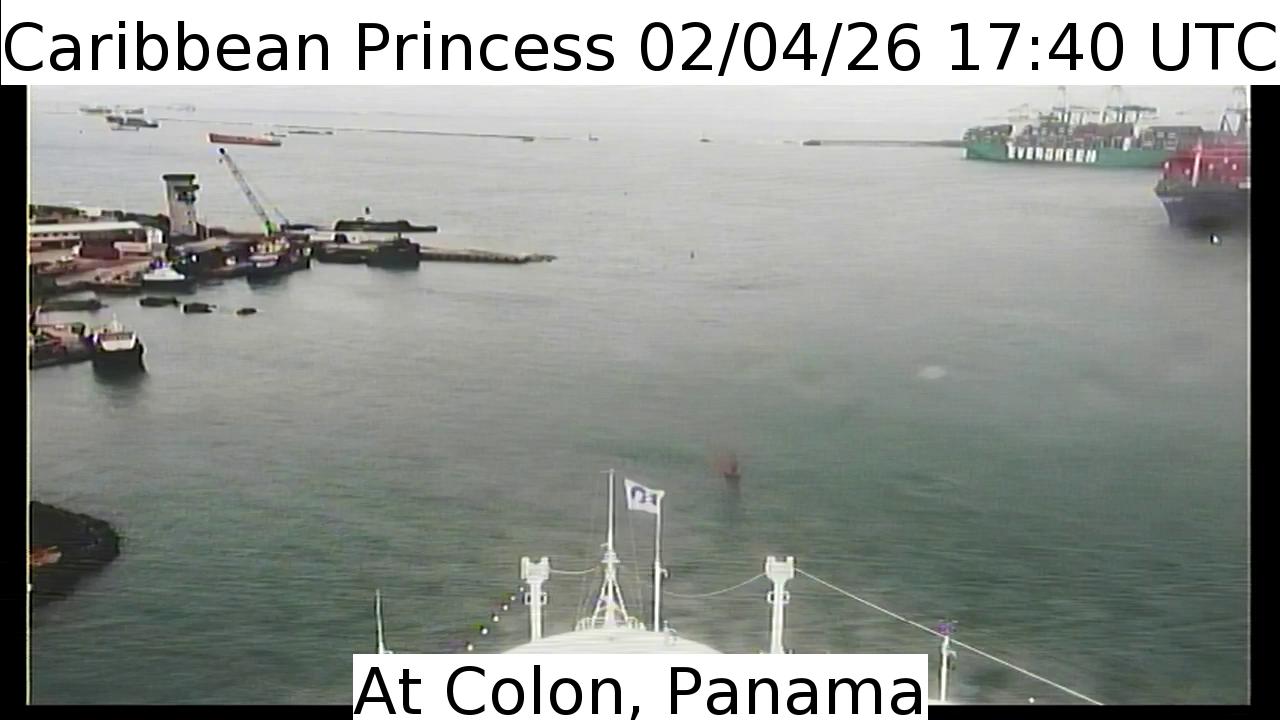 Caribbean Princess, Princess Cruises - 489.5 km von Bajo del Pedernal: Live von der Brücke - Ein Blick von der Brücke des Kreuzfahrtschiffs Caribbean Princess.