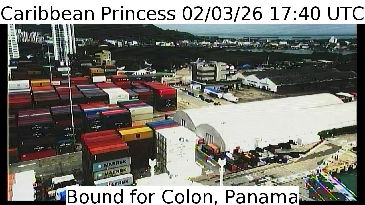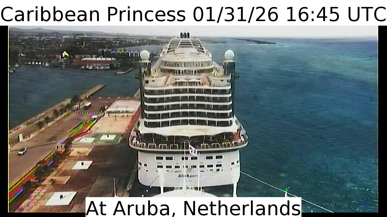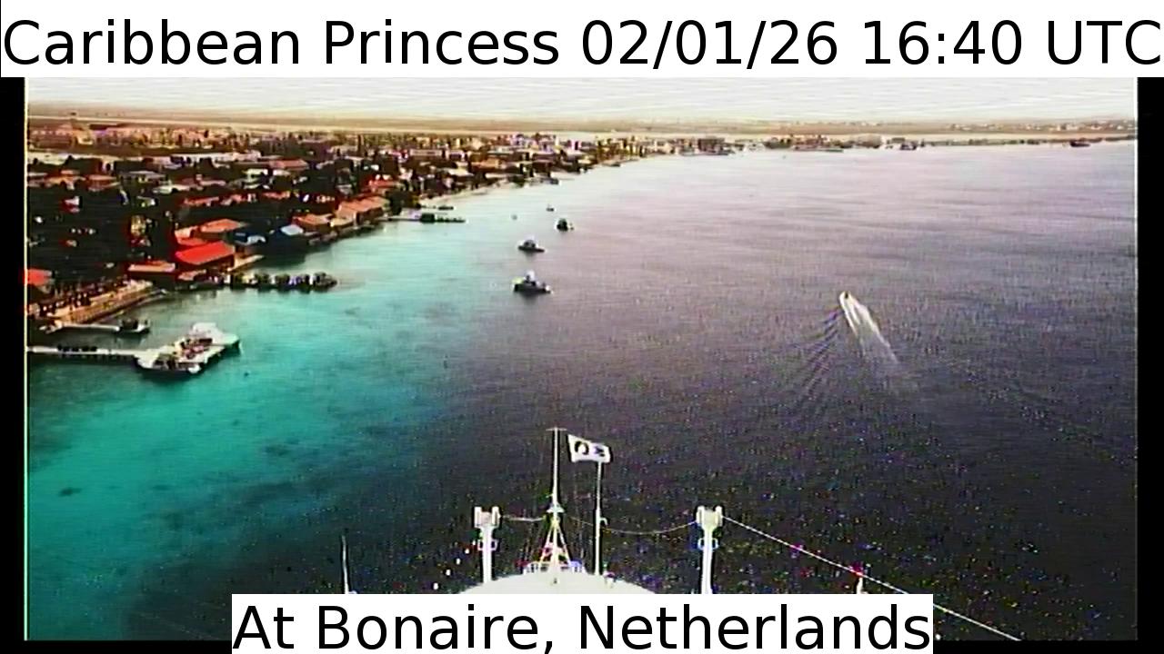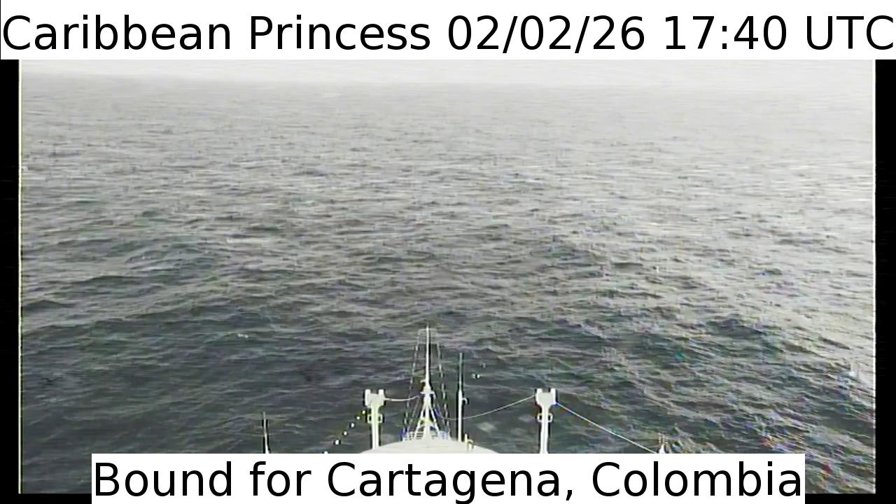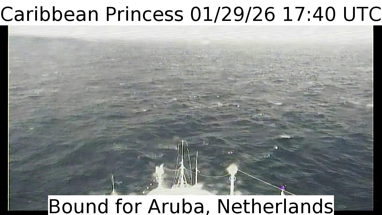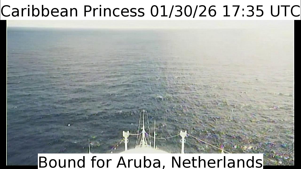 Caribbean Princess, Princess Cruises - 492.1 km von Santa Eduvigues: Live von der Brücke - Ein Blick von der Brücke des Kreuzfahrtschiffs Caribbean Princess.