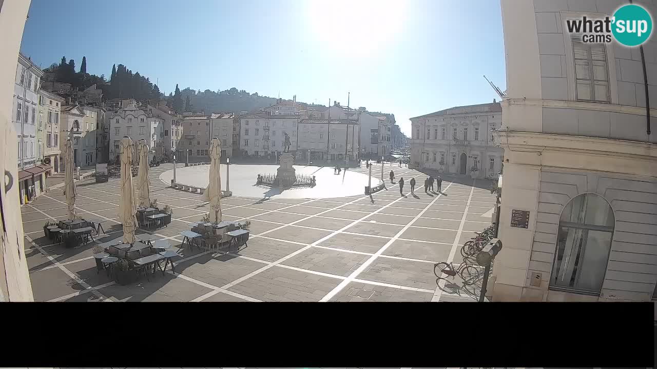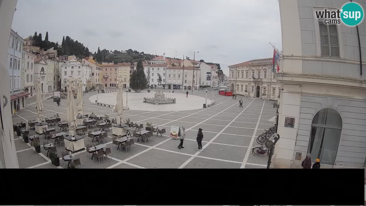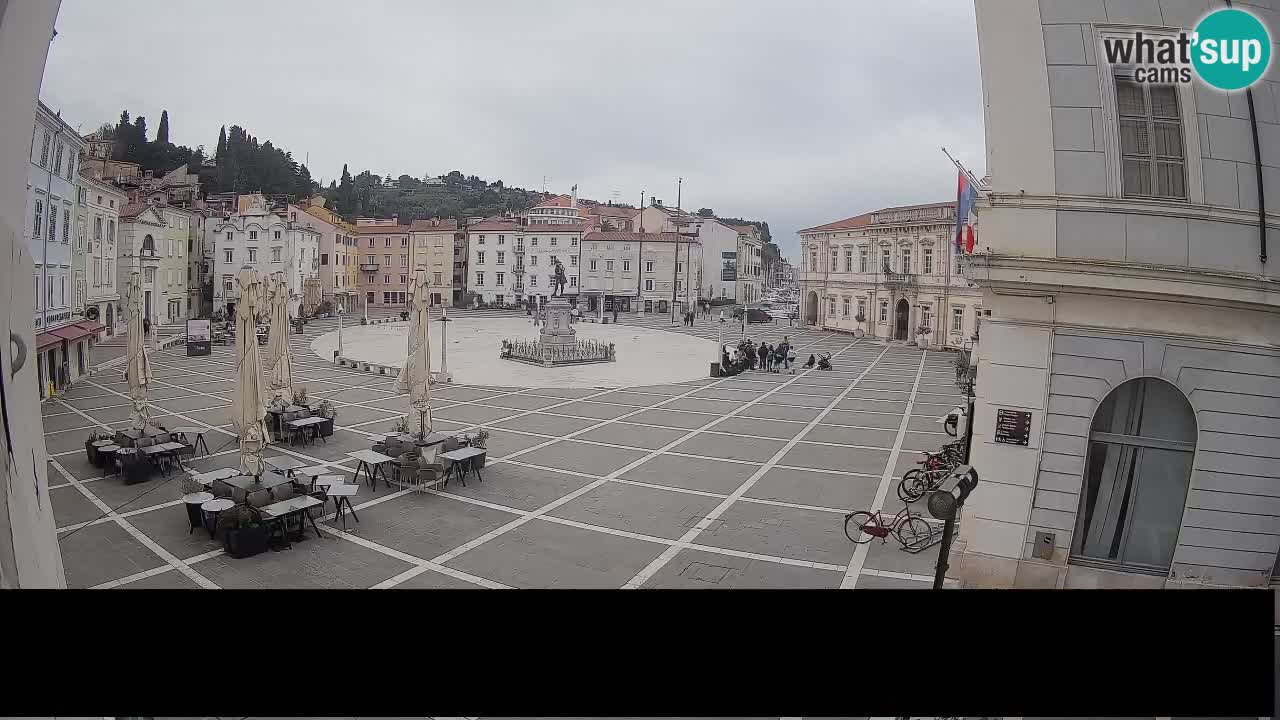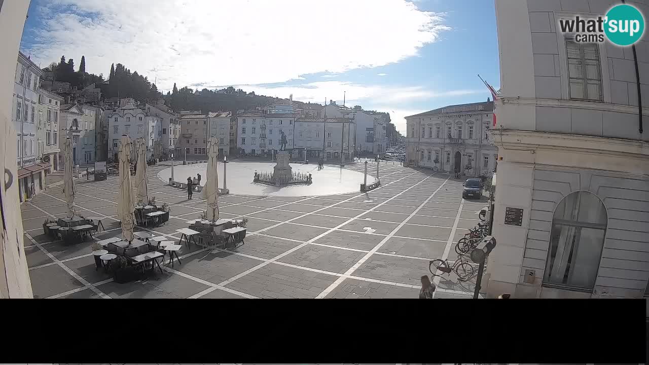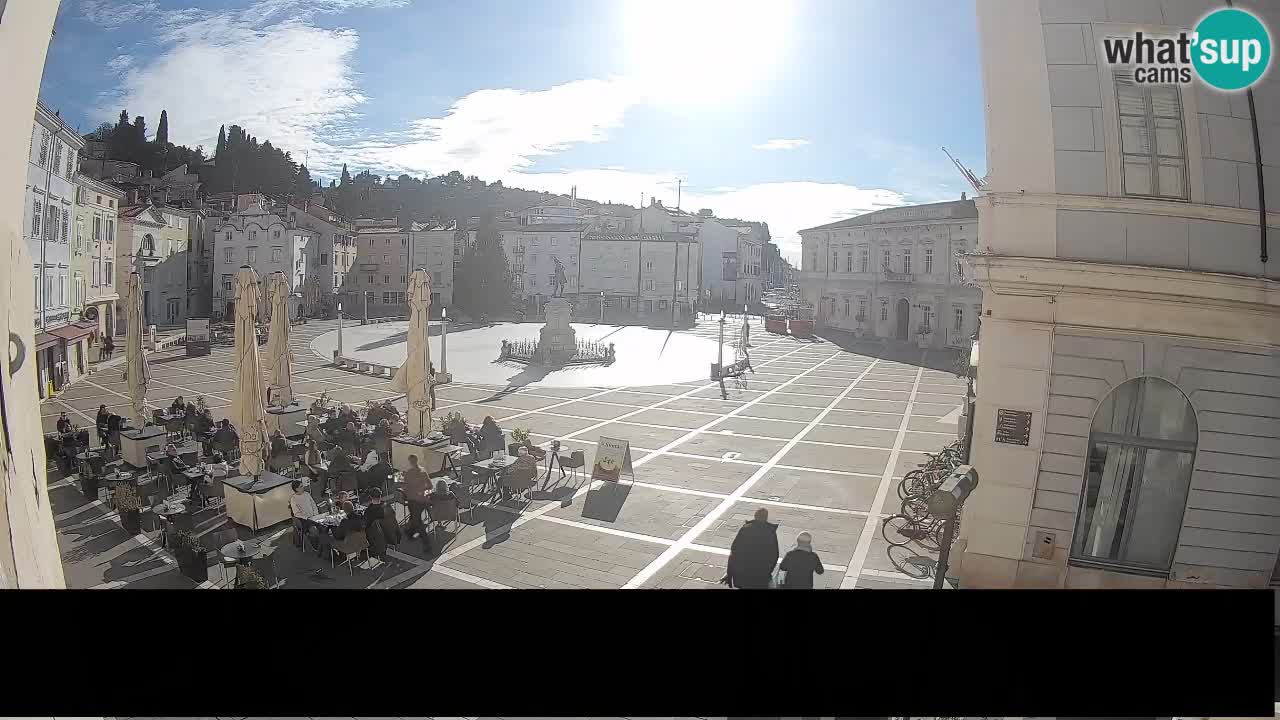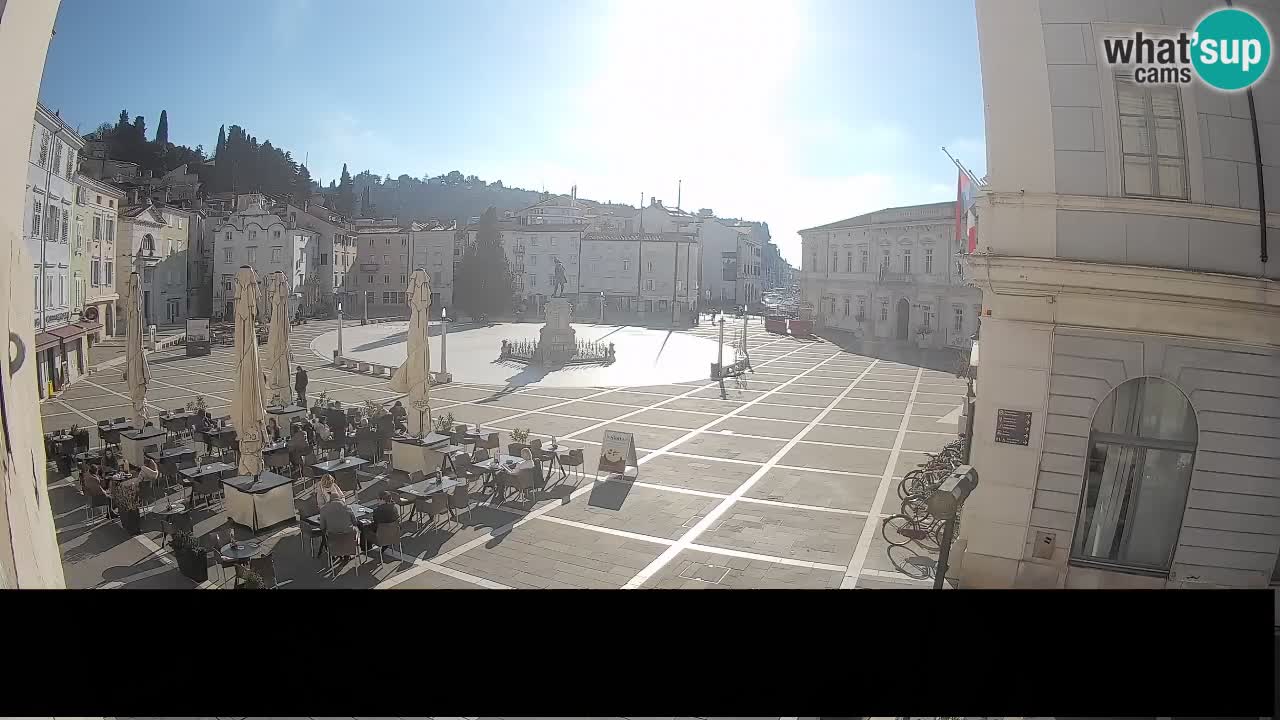 Piran, Slowenien - 7.1 km von Basanija: Tartini-Platz vom 'Mestna Kavarna'