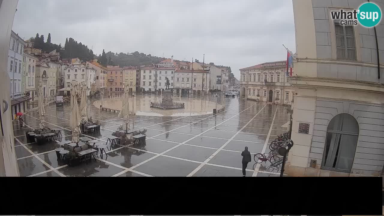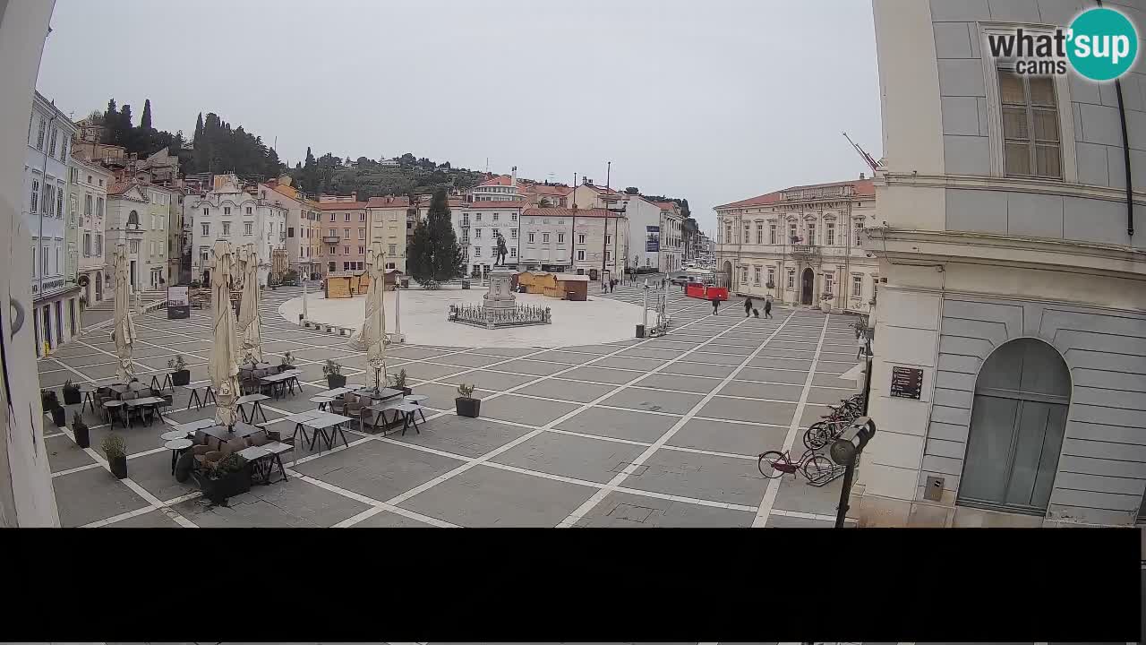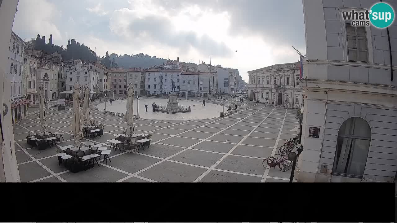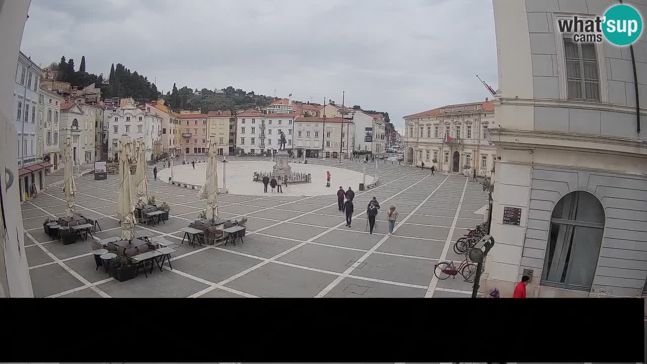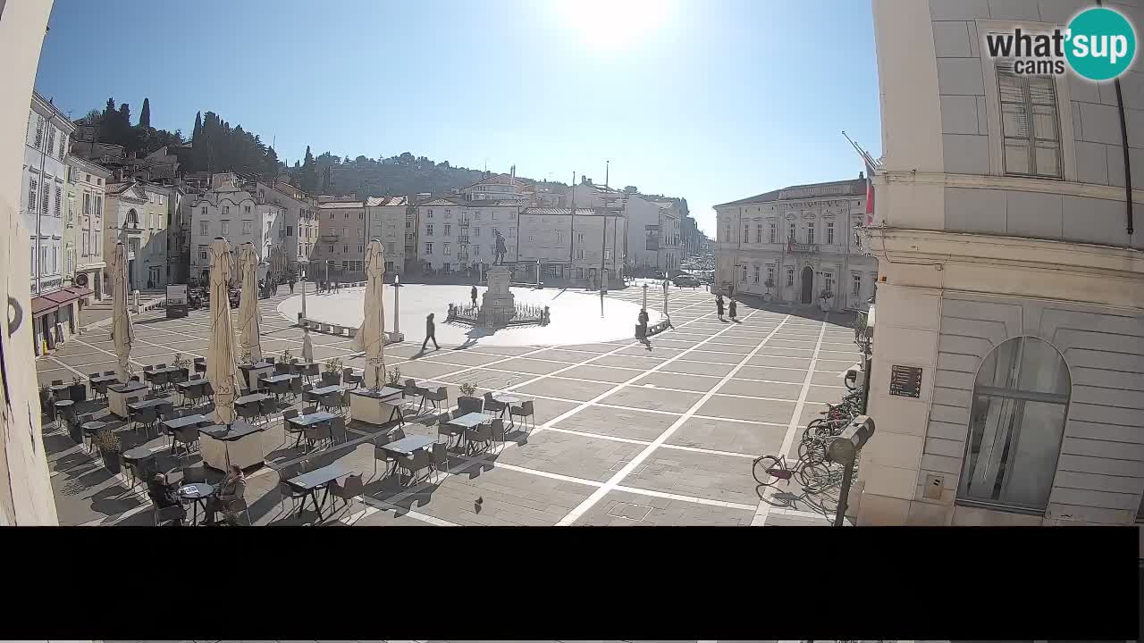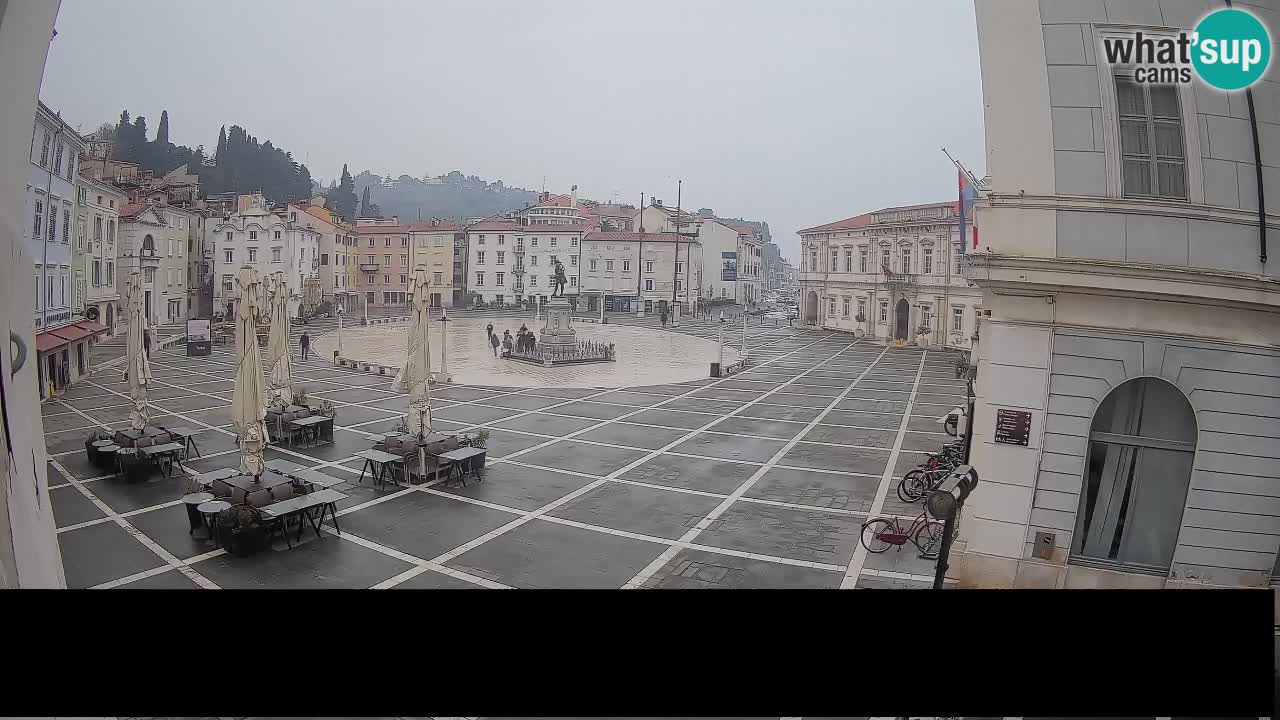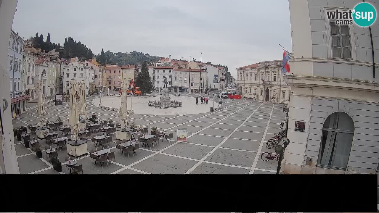 Piran, Slowenien - 7.1 km von Basanija: Tartini-Platz vom 'Mestna Kavarna'