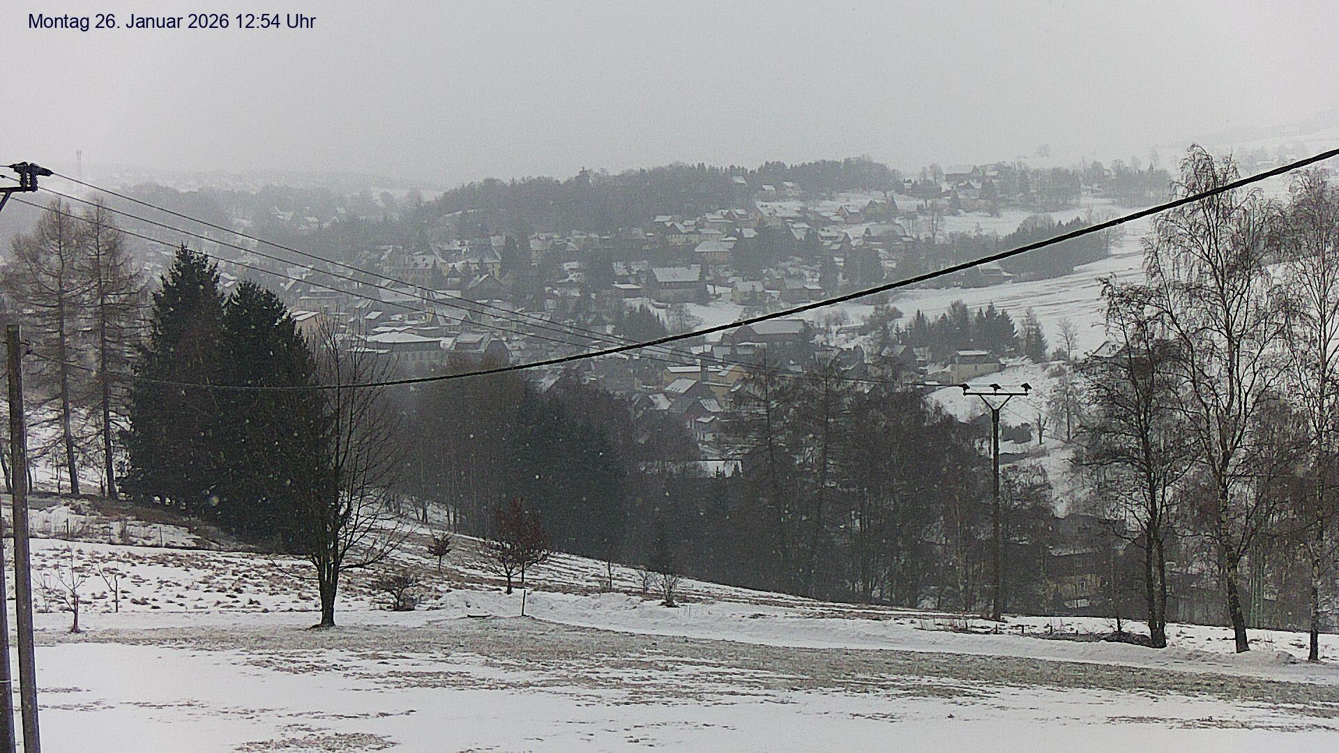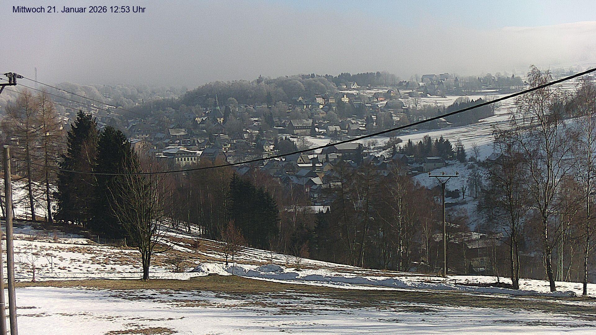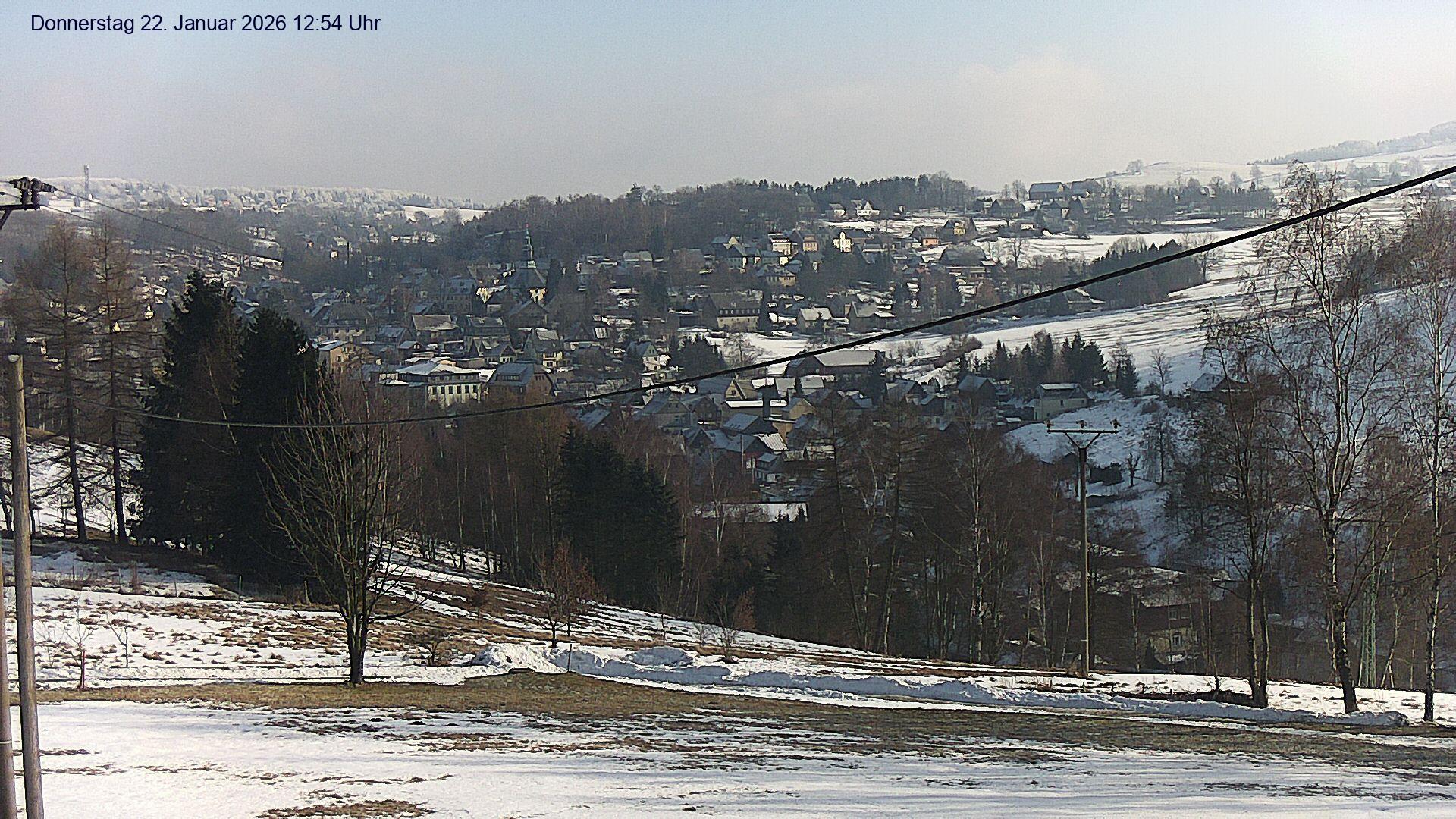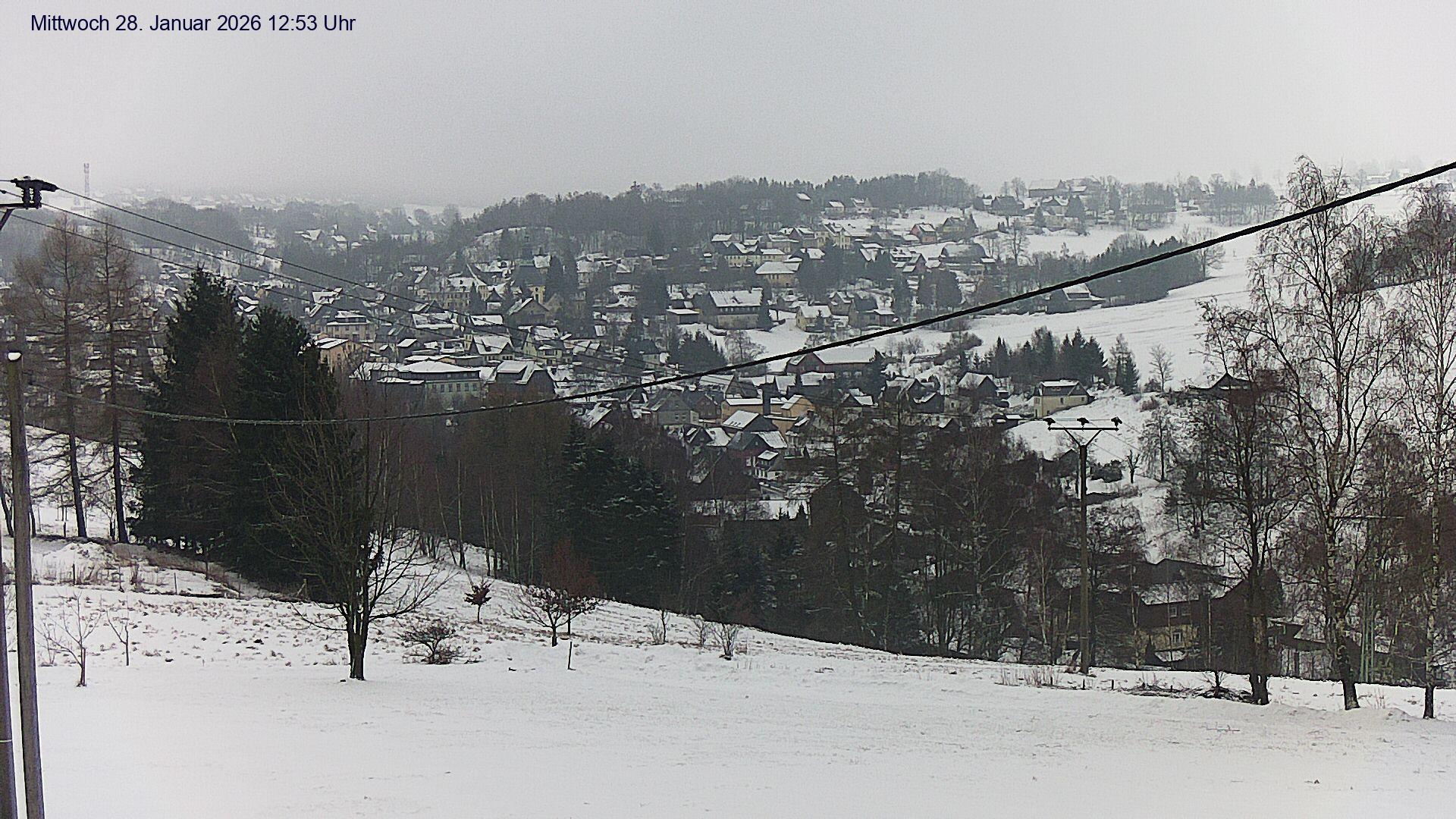 Olbernhau, Deutschland - 25.4 km von Ahnikov: Blick auf Olbernhau - Blick auf das Stadtzentrum von Olbernhau im Erzgebirge. Im Hintergrund ist der 500m lange Skihang am 606m hohen Hainberg zu sehen.