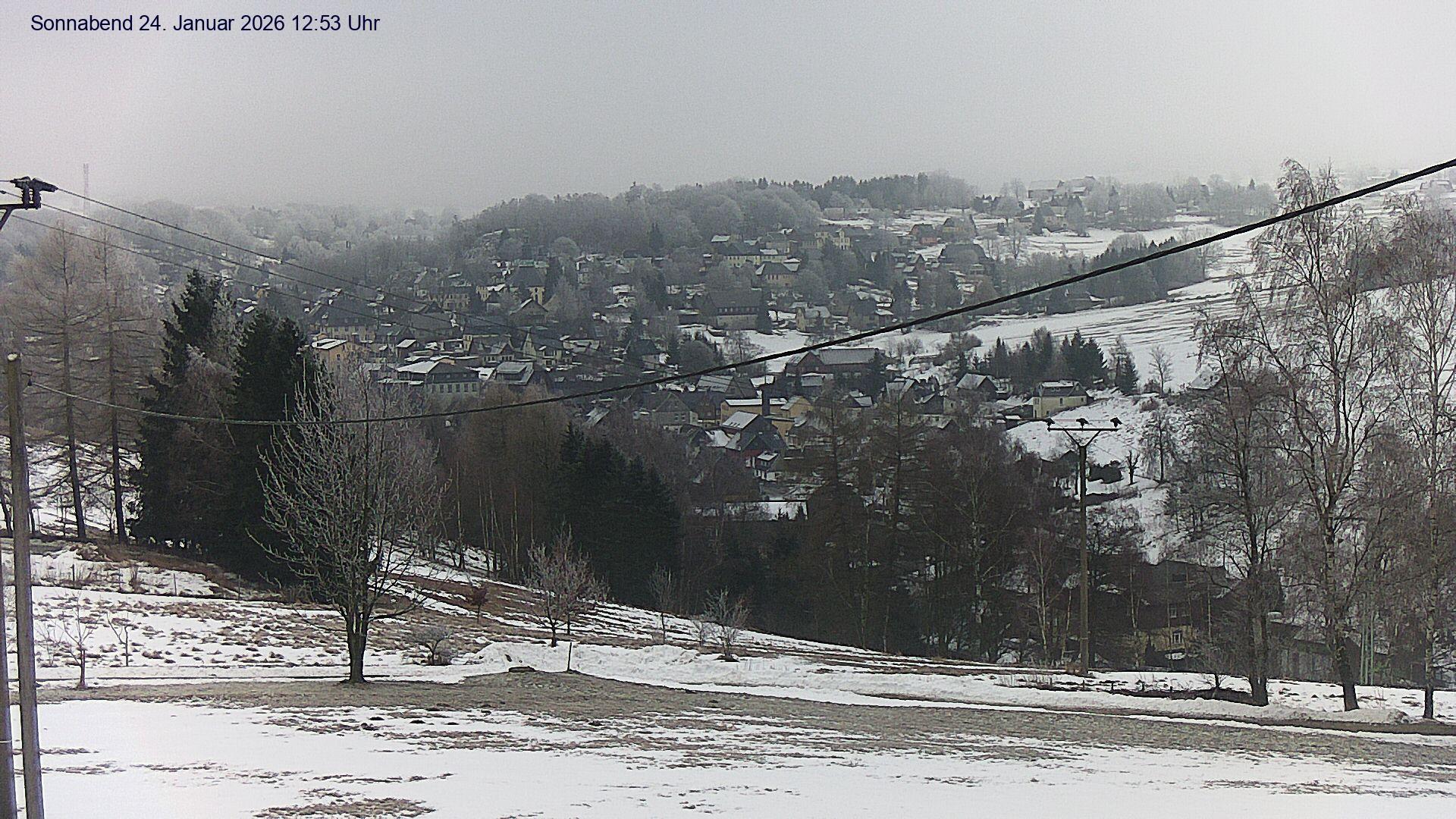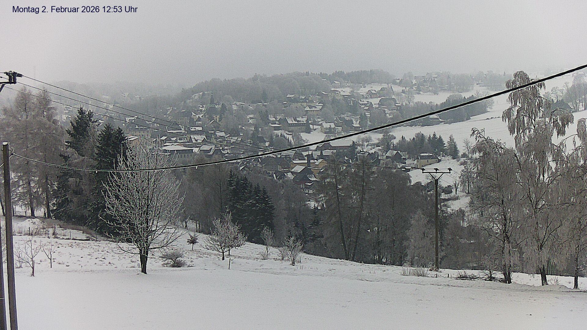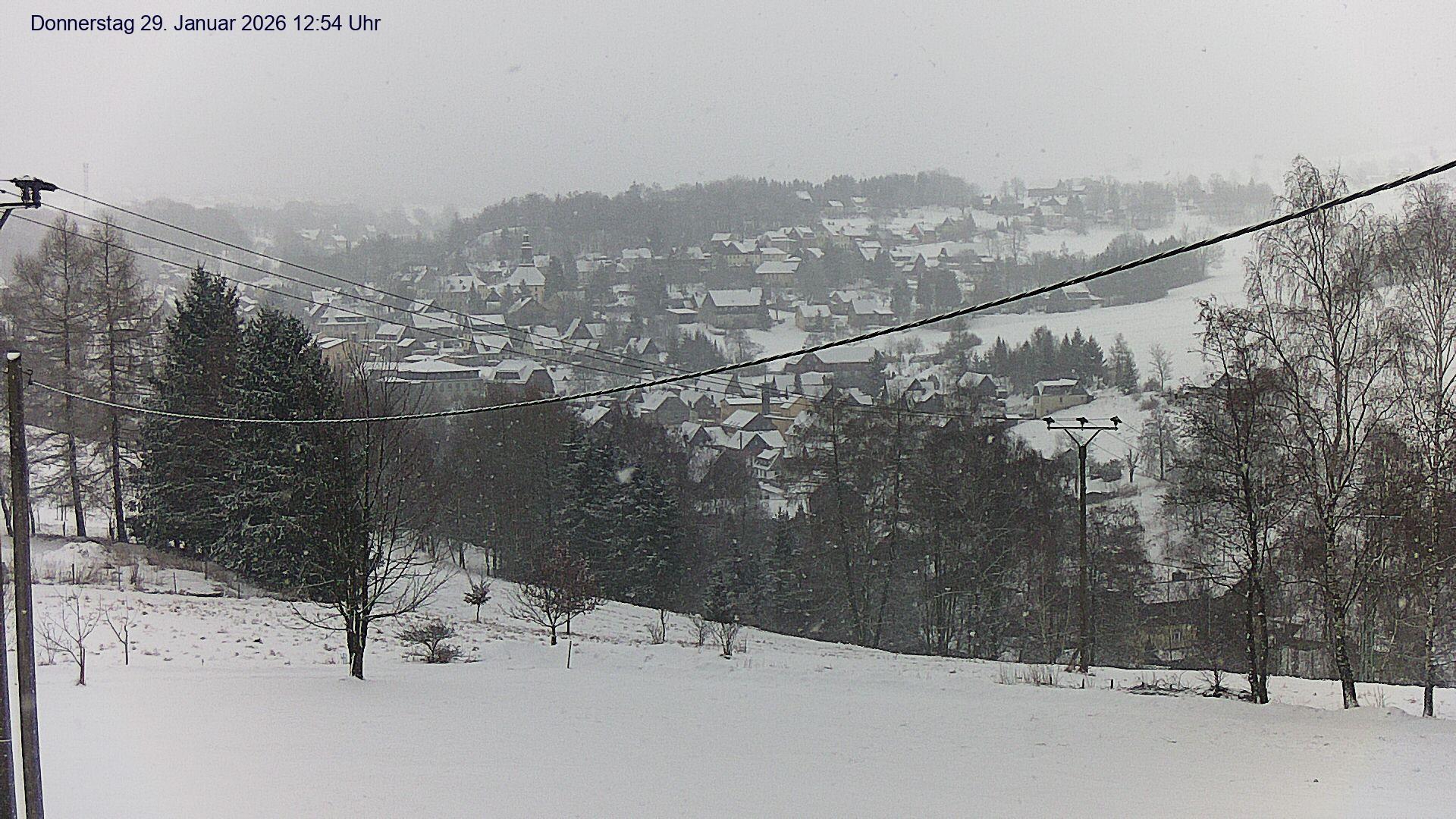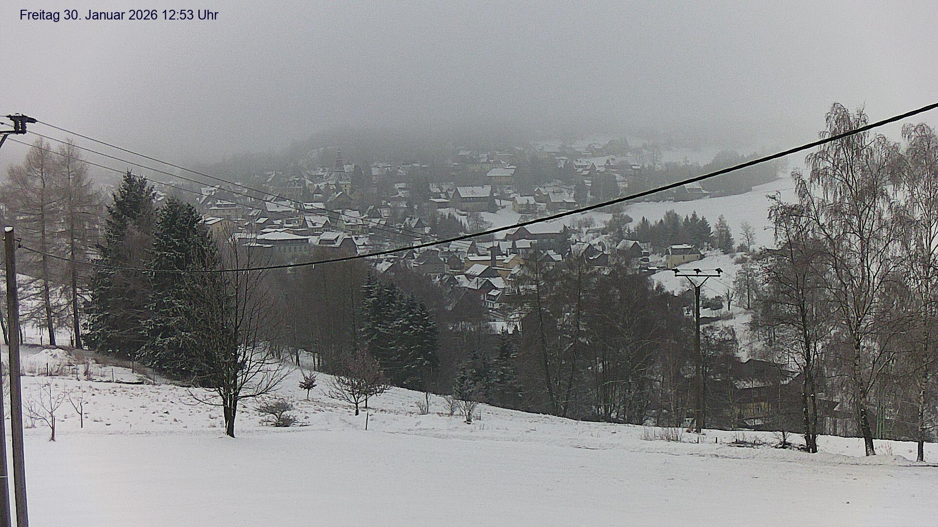 Olbernhau, Deutschland - 25.4 km von Ahnikov: Blick auf Olbernhau - Blick auf das Stadtzentrum von Olbernhau im Erzgebirge. Im Hintergrund ist der 500m lange Skihang am 606m hohen Hainberg zu sehen.