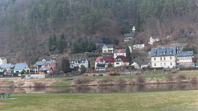 Bad Schandau, Deutschland - 28.4 km von Alt Hummel: Blick über die Elbe - Ein Blick über die Elbe in Bad Schandau von der Terrasse der Ferienappartements 'Elbaussicht' Krippen.