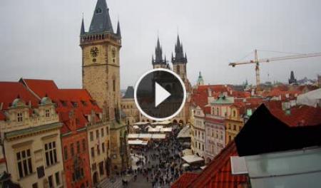 Prague, Tschechische Republik - 94.8 km von Annovice: HD-Stream Altstadt - Prag, Blick auf die astronomische Uhr, den Platz der Altstadt und die Kirche der Jungfrau Maria vor dem Teyn.