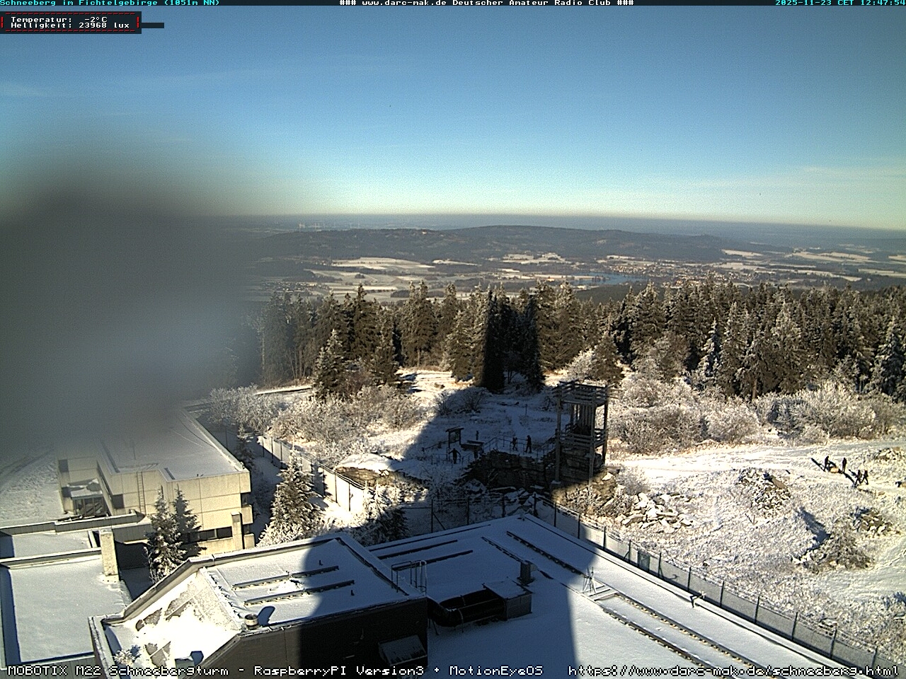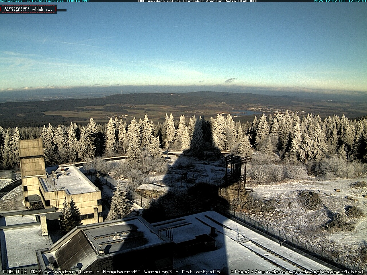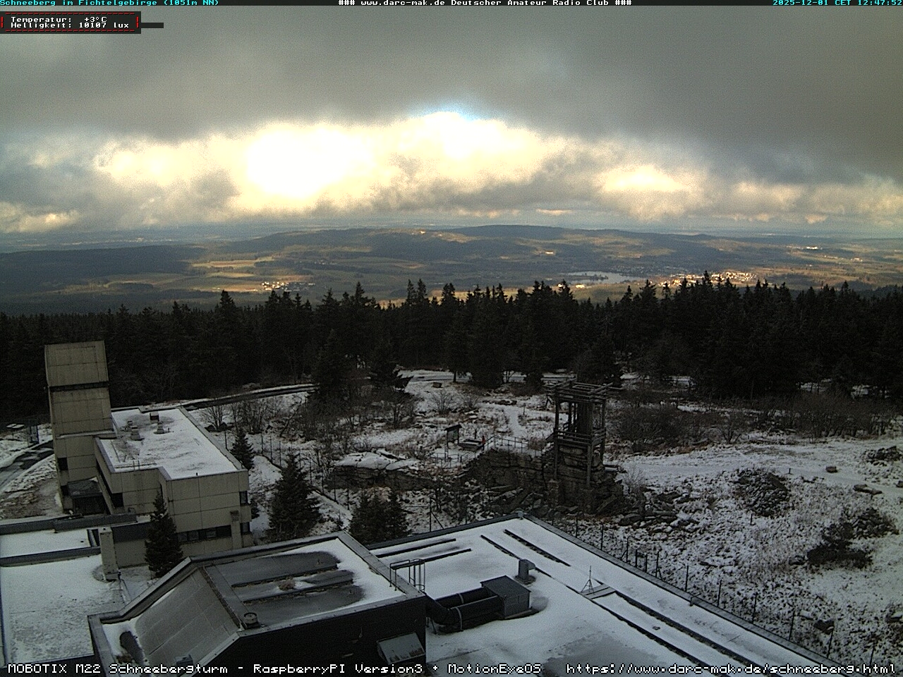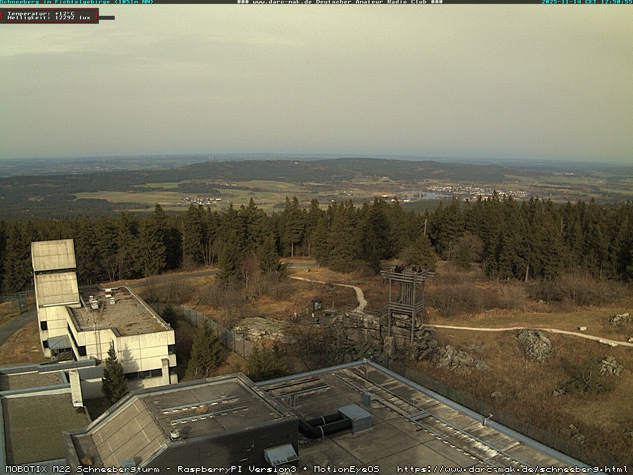 Schneeberg, Deutschland - 30.1 km von As: Blick vom Schneeberg - Die WebCam befindet sich auf dem Schneeberg, dem höchsten Berg in Franken in Nord-Ost-Bayern. Die Kamera zeigt Richtung Norden nach Weissenstadt mit Weissenstädtersee.