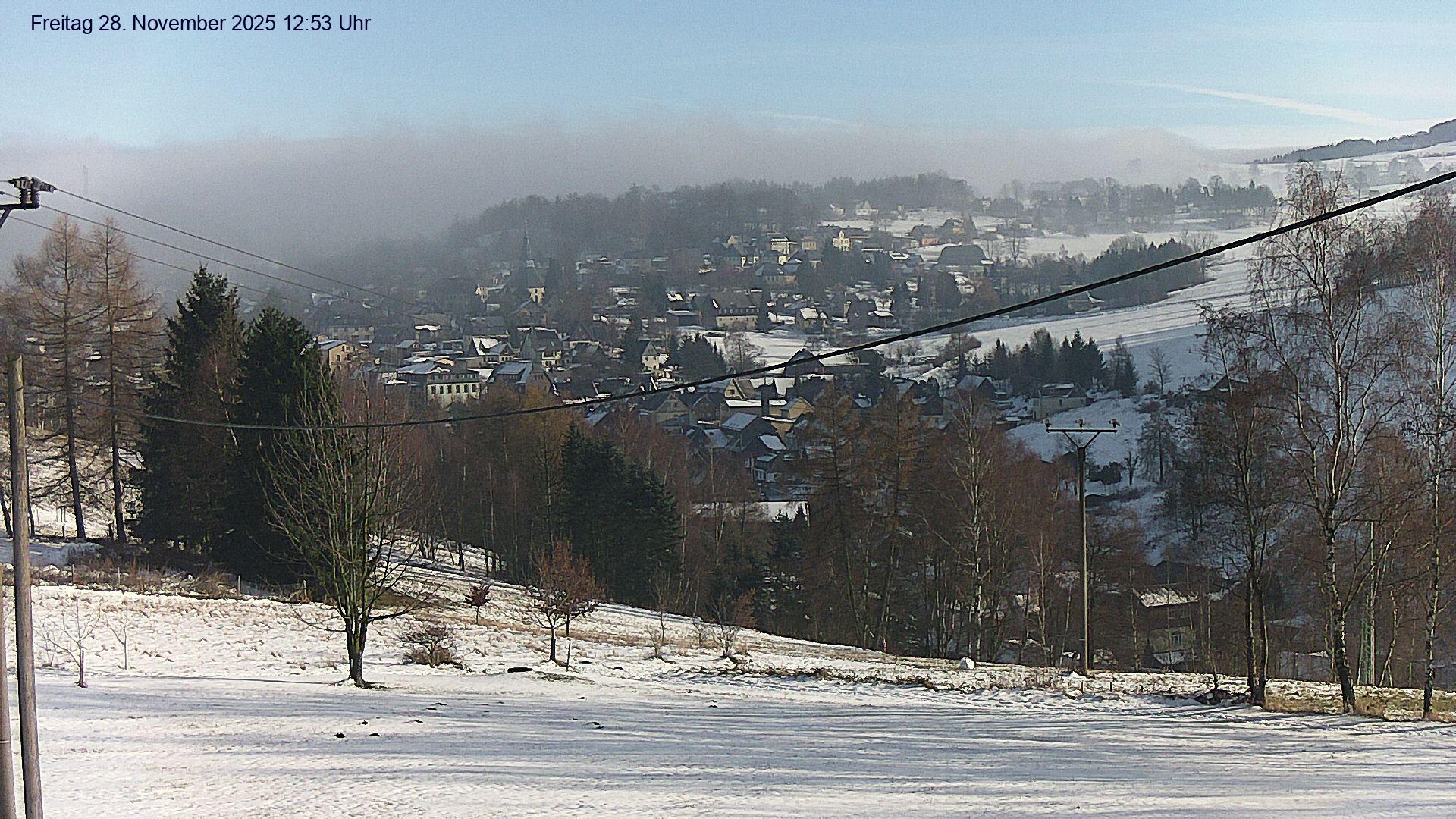 Zinnwald-Georgenfeld, Deutschland - 59.9 km von Canovice: Webcam im Erzgebirge - Ein Blick vom Dach der Beerenvilla auf ca. 890 m Seehöhe in Zinnwald-Georgenfeld (Altenberg / Sachsen).