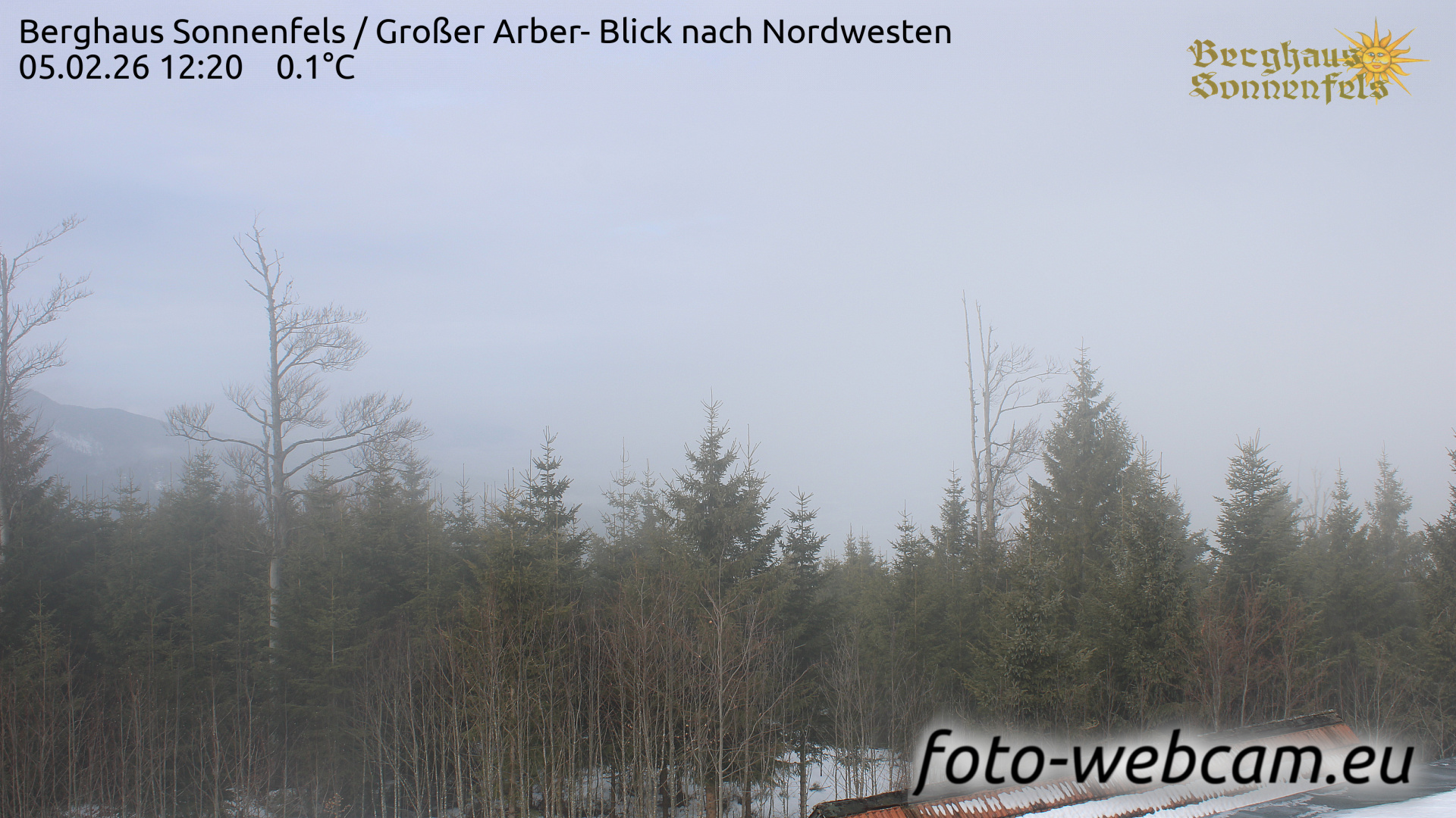 Bayerisch Eisenstein, Deutschland - 69.5 km von Mirotice: HD Foto-Webcam Berghaus Sonnenfels - Berghaus Sonnenfels / Großer Arber - Blick nach Nordwesten.