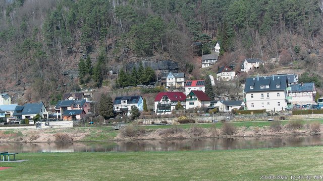 Bad Schandau, Deutschland - 50.4 km von Wallach: Blick über die Elbe - Ein Blick über die Elbe in Bad Schandau von der Terrasse der Ferienappartements 'Elbaussicht' Krippen.