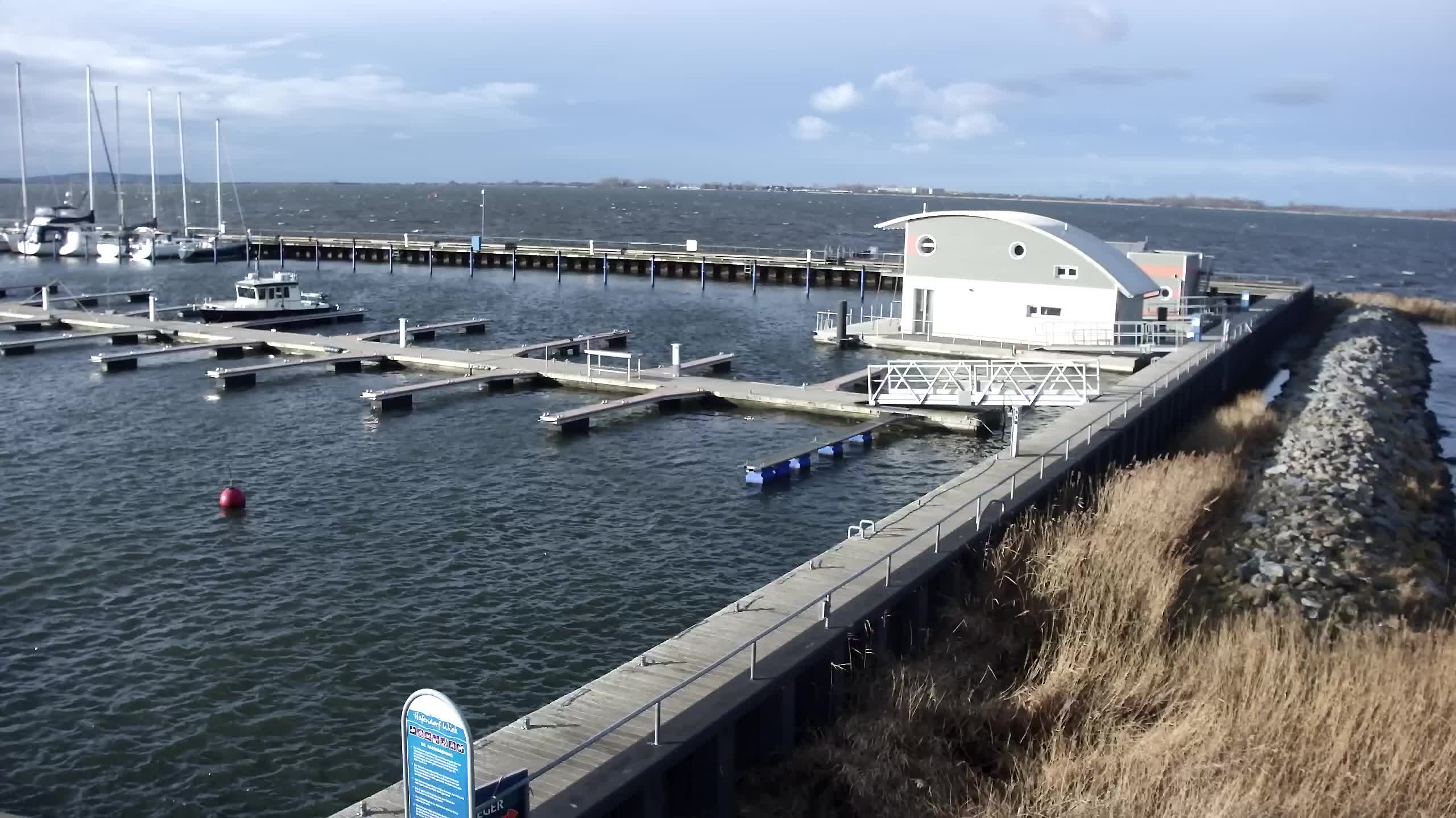 Wiek (Rügen), Deutschland - 67.5 km von Aalebak: Hafenblick - HD-Livestream aus Wiek, einem der schönsten Dörfer der Insel Rügen, mit Blick auf den modernen Hafen des traditionellen Fischerortes.