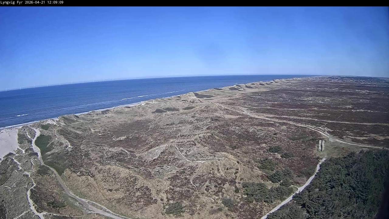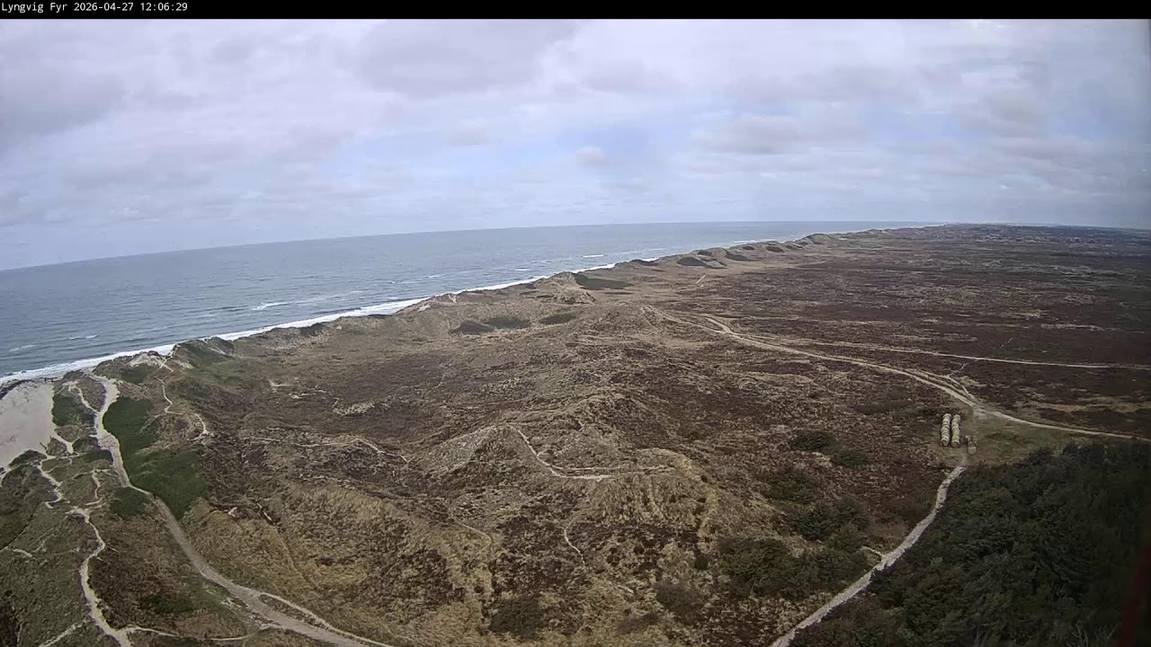 Hvide Sande, Dänemark - 50.7 km von Alslev: Holmsland Klit vom Lyngvig Fyr by Esmark - Die Webcam sendet vom 38 Meter hohen Leuchtturm Lyngvig Fyr zwischen Hvide Sande und Søndervig und bietet eine tolle Aussicht auf das Feriengebiet am Holmsland Klit und die Nordsee in Dänemark.