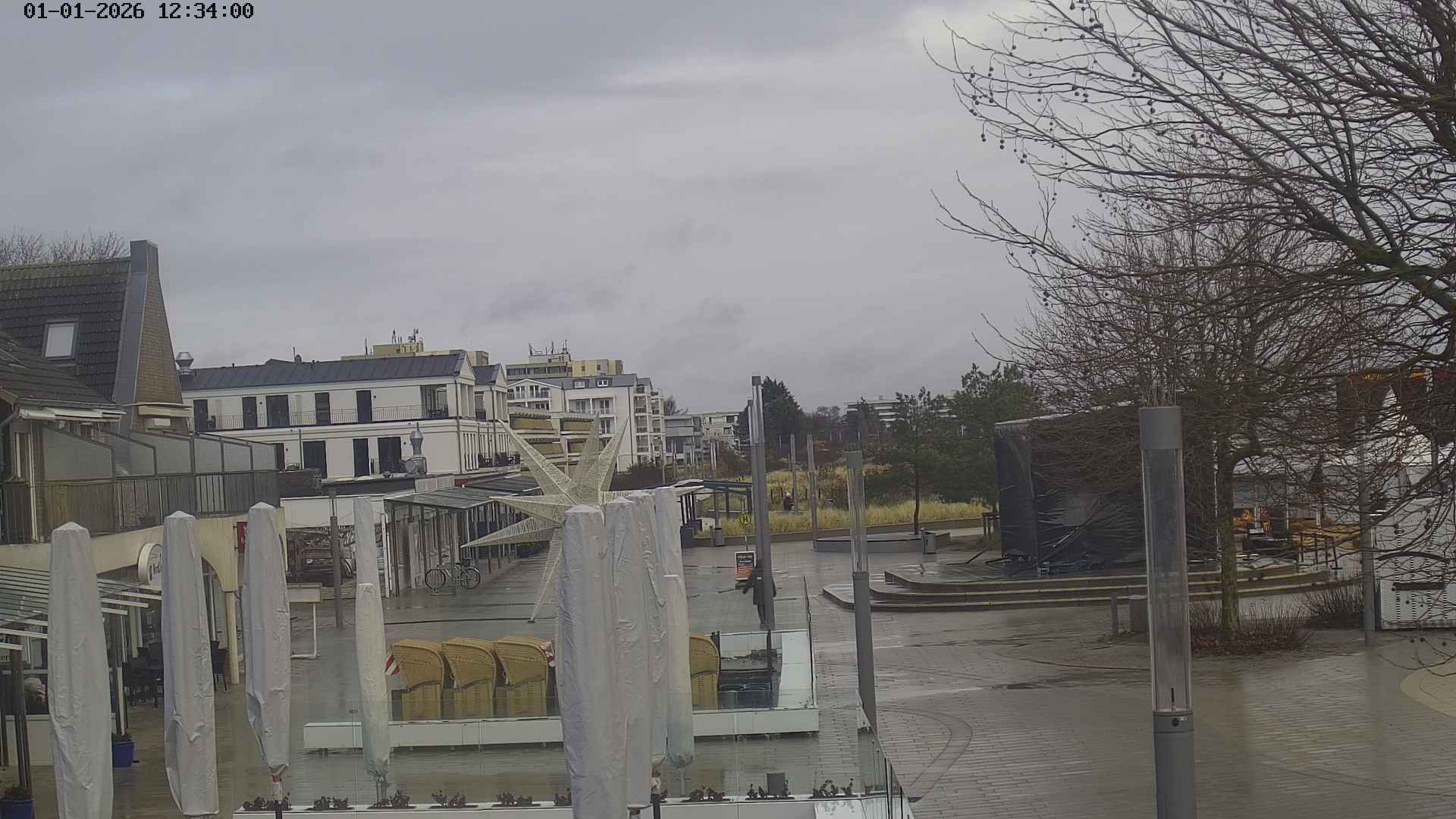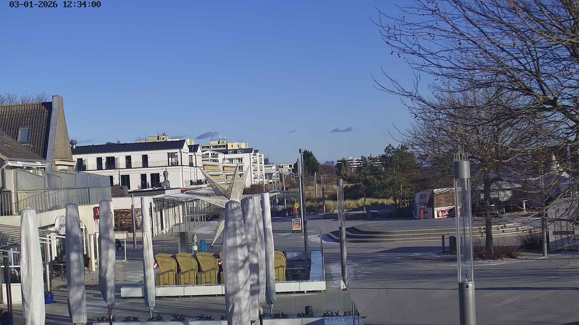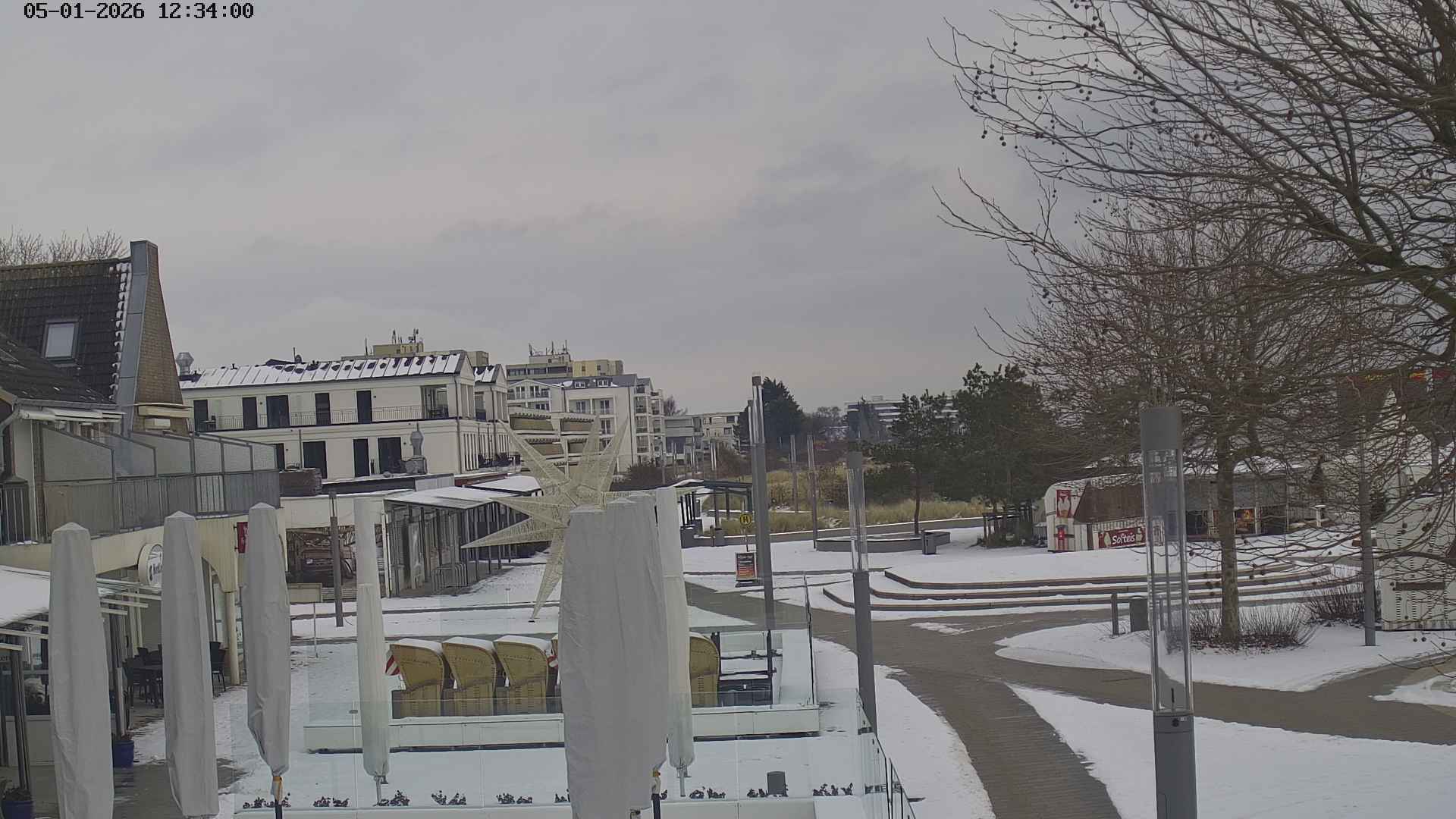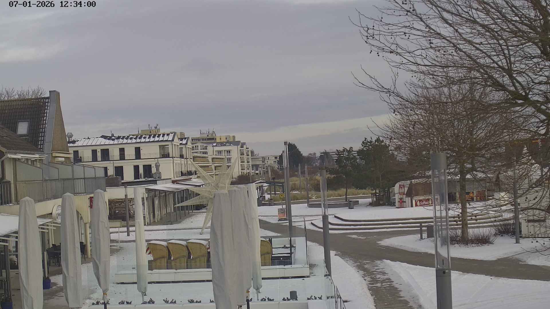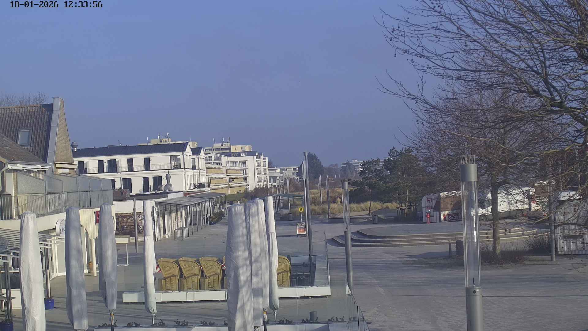 Heiligenhafen, Deutschland - 58.6 km von Anderstrup: Panoramakamera Ferienhaus UTKIEK - Die Livecam befindet sich am 5-Sterne-Ferienhaus UTKIEK, dem neuen, barrierefreien Reethaus (138 qm) in exponierter Lage im Strand Resort Heiligenhafen. Unmittelbar an der Ostsee gelegen hat man von hier einen traumhaften Rundumblick auf die große Erlebnis-Seebrücke, dem neuen Highlight Heiligenhafens, auf Fehmarn mit der prägnanten Sundbrücke, auf das Naturschutzgebiet Graswarder mit seiner faszinierende Vogelwelt und den einzigartigen Villen sowie auf den beliebten 5-Sterne Marina Yachthafen mit seinem maritimen Flair.