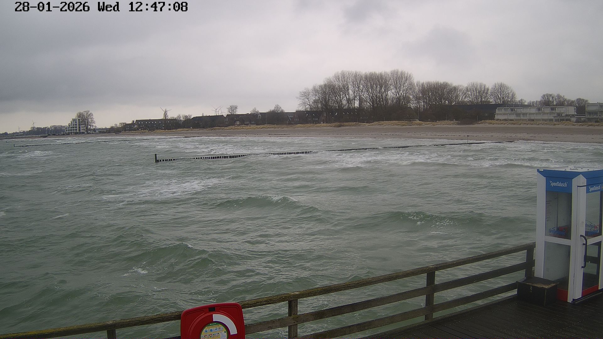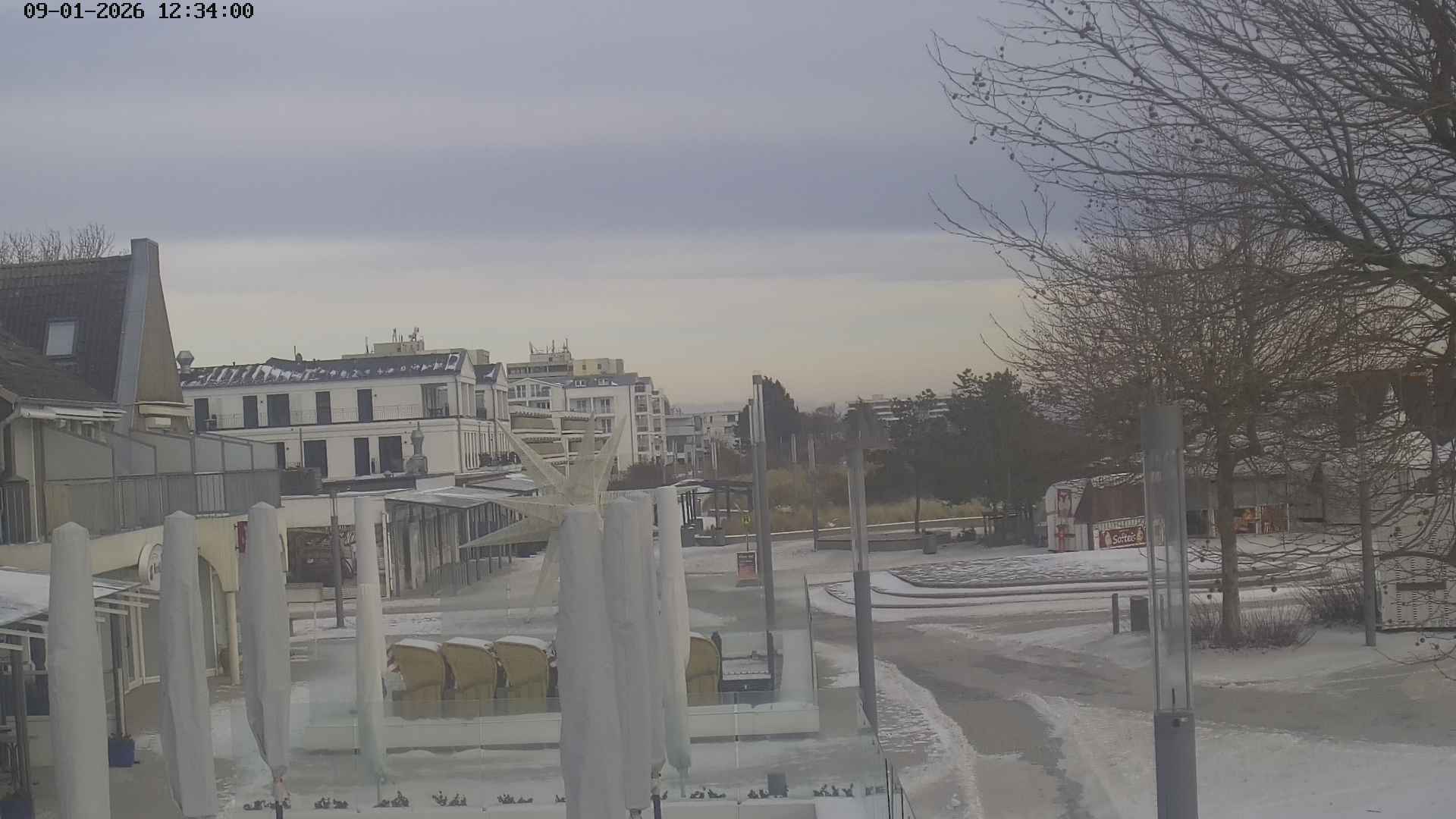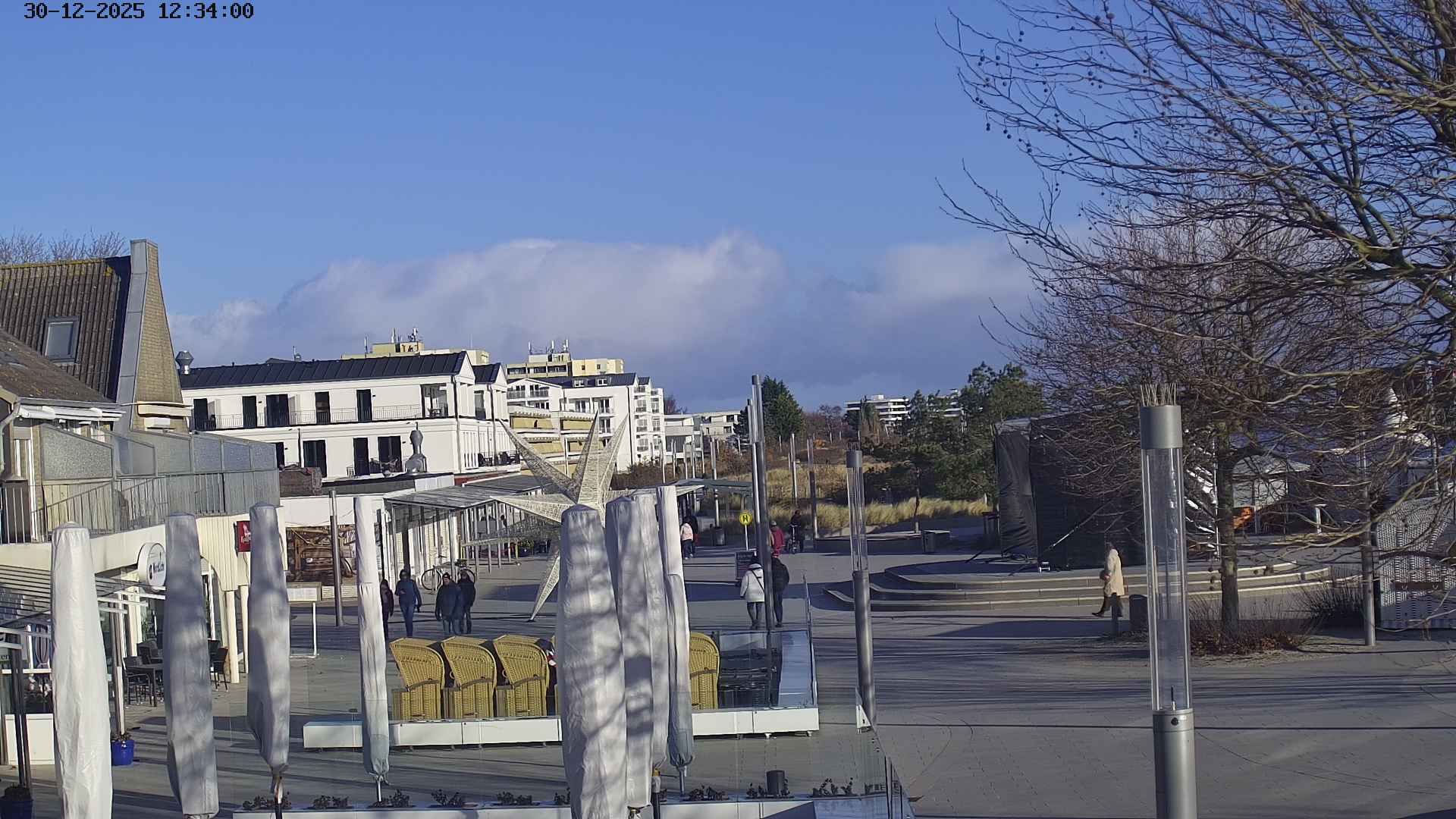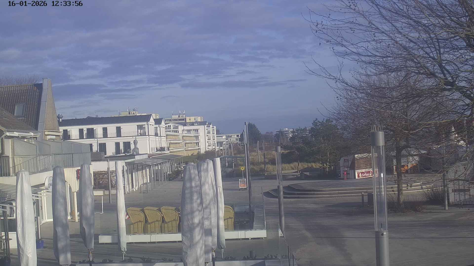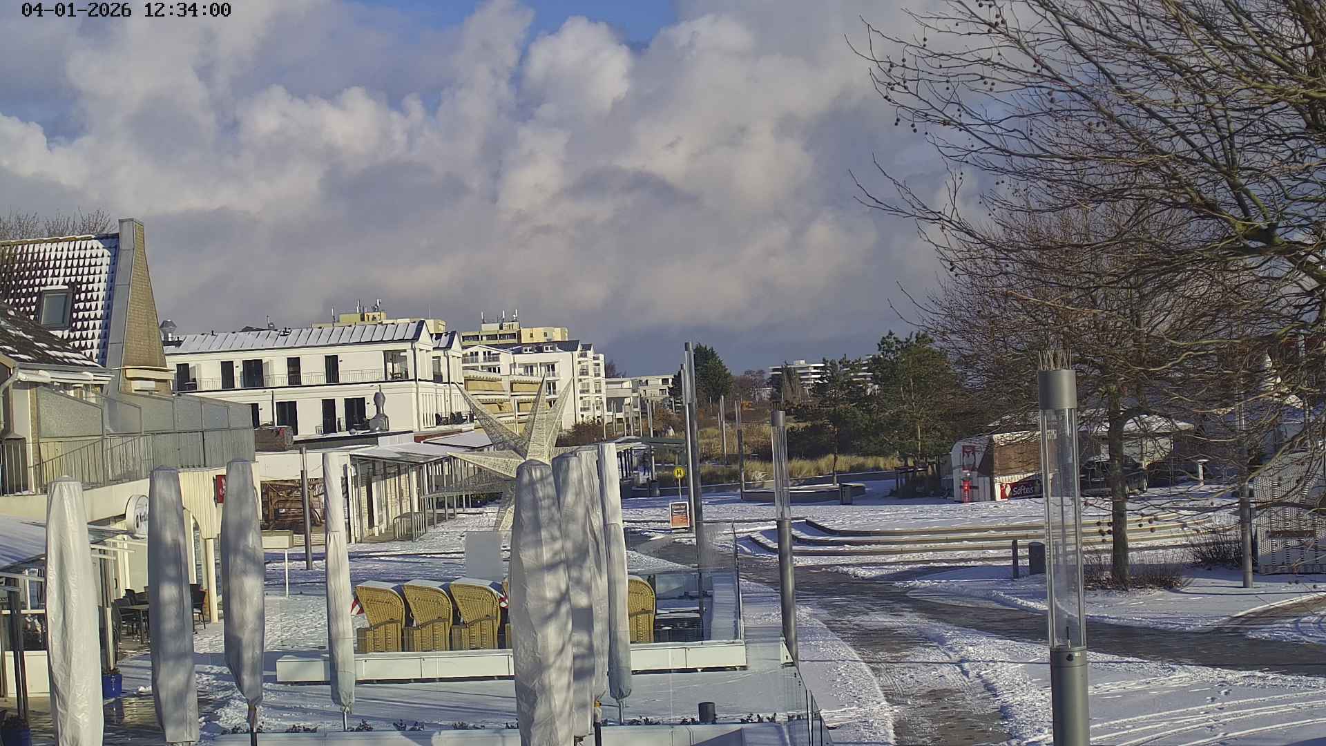 Heiligenhafen, Deutschland - 58.6 km von Anderstrup: Panoramakamera Ferienhaus UTKIEK - Die Livecam befindet sich am 5-Sterne-Ferienhaus UTKIEK, dem neuen, barrierefreien Reethaus (138 qm) in exponierter Lage im Strand Resort Heiligenhafen. Unmittelbar an der Ostsee gelegen hat man von hier einen traumhaften Rundumblick auf die große Erlebnis-Seebrücke, dem neuen Highlight Heiligenhafens, auf Fehmarn mit der prägnanten Sundbrücke, auf das Naturschutzgebiet Graswarder mit seiner faszinierende Vogelwelt und den einzigartigen Villen sowie auf den beliebten 5-Sterne Marina Yachthafen mit seinem maritimen Flair.