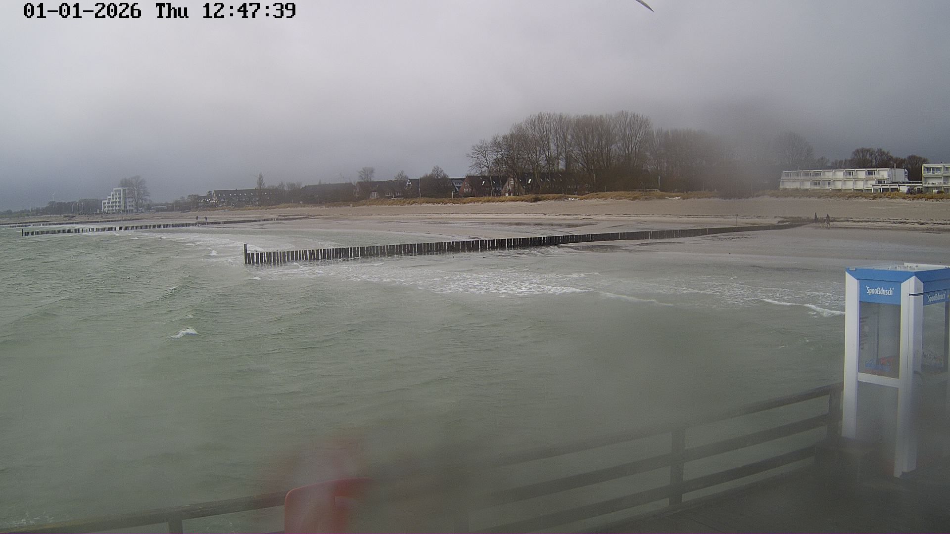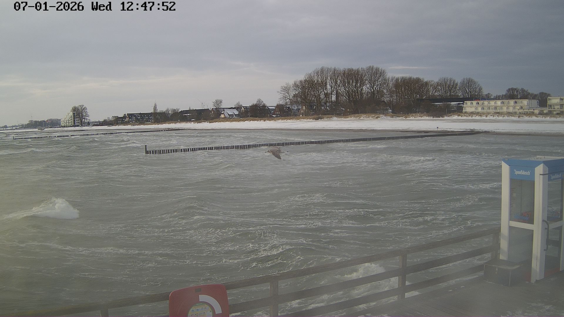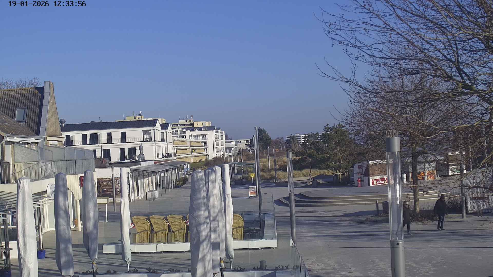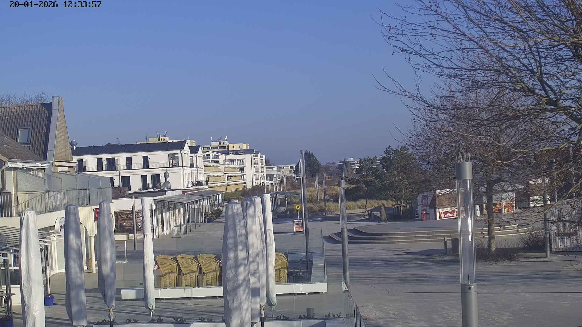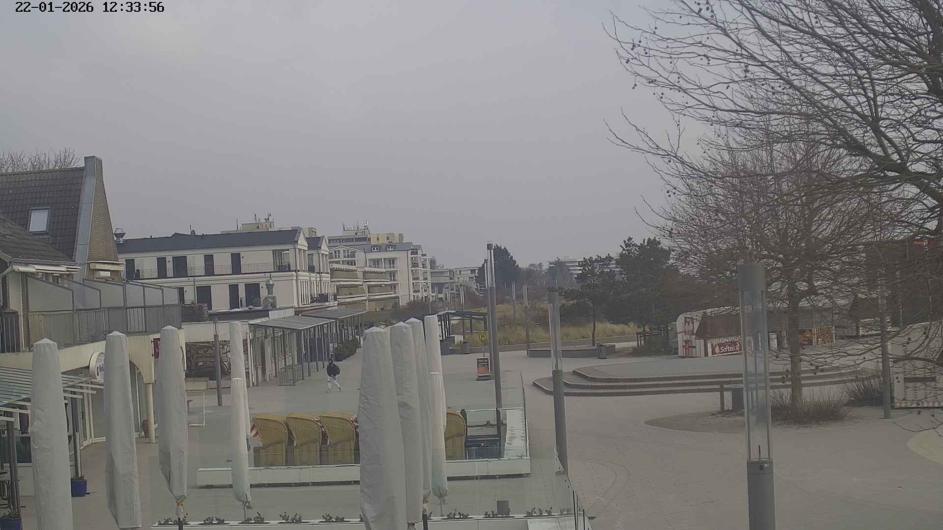 Heiligenhafen, Deutschland - 58.6 km von Anderstrup: Panoramakamera Ferienhaus UTKIEK - Die Livecam befindet sich am 5-Sterne-Ferienhaus UTKIEK, dem neuen, barrierefreien Reethaus (138 qm) in exponierter Lage im Strand Resort Heiligenhafen. Unmittelbar an der Ostsee gelegen hat man von hier einen traumhaften Rundumblick auf die große Erlebnis-Seebrücke, dem neuen Highlight Heiligenhafens, auf Fehmarn mit der prägnanten Sundbrücke, auf das Naturschutzgebiet Graswarder mit seiner faszinierende Vogelwelt und den einzigartigen Villen sowie auf den beliebten 5-Sterne Marina Yachthafen mit seinem maritimen Flair.