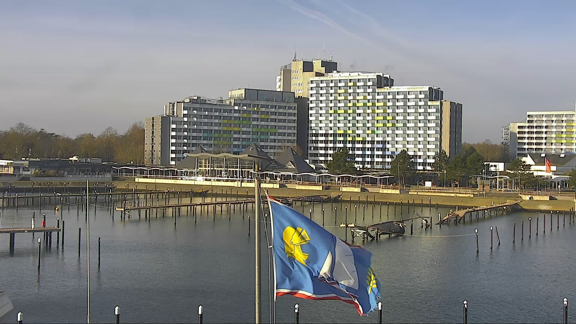 Ostseebad Damp, Deutschland - 41.8 km von Aroskiobing: Yachthafen - Die Webcam am Ostsse Resort Damp zeigt den angrenzenden Yachthafen und die Strandpromenade. Das Bild wechselt alle paar Minuten, zwischen diesen beiden Standorten.