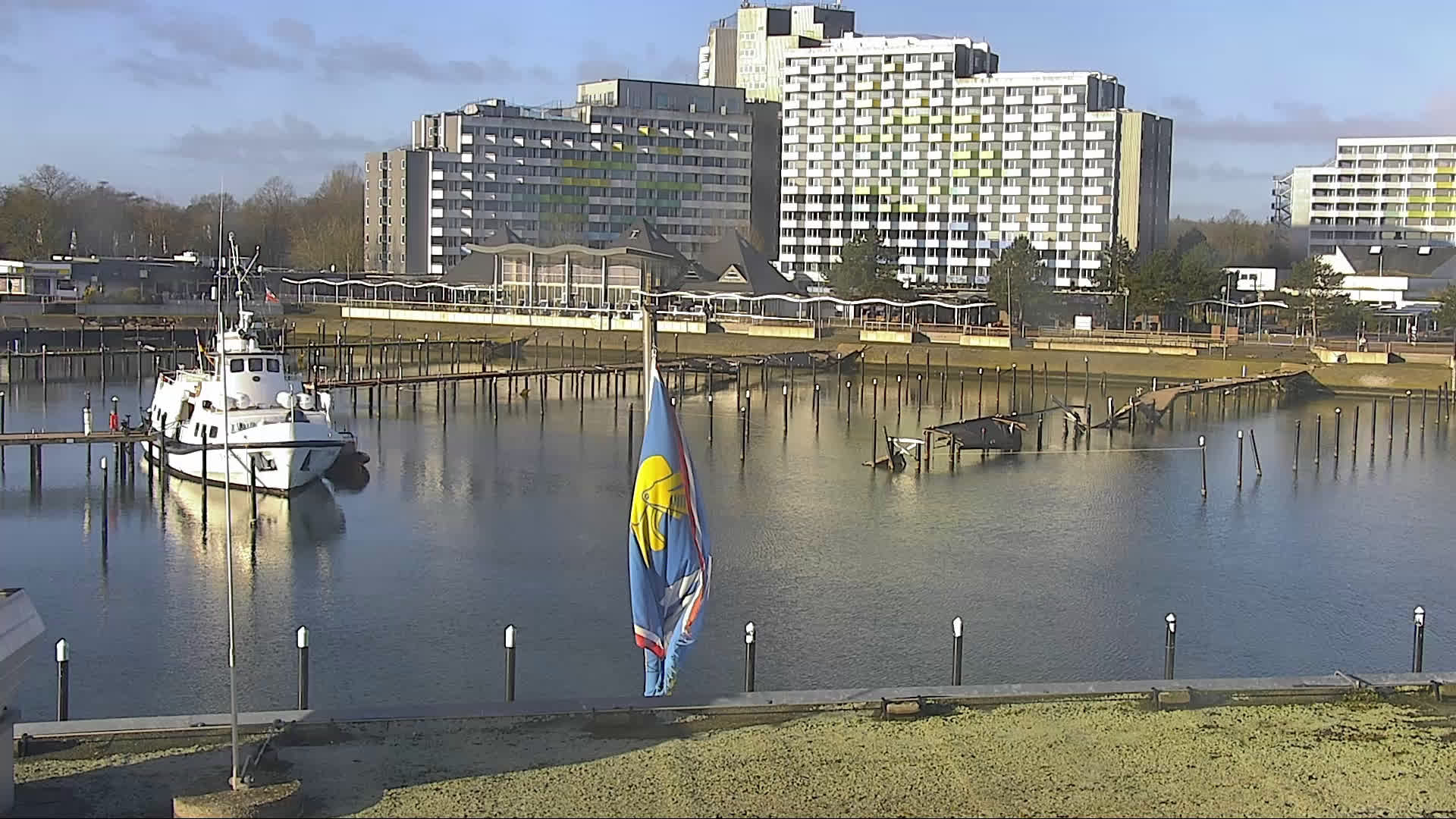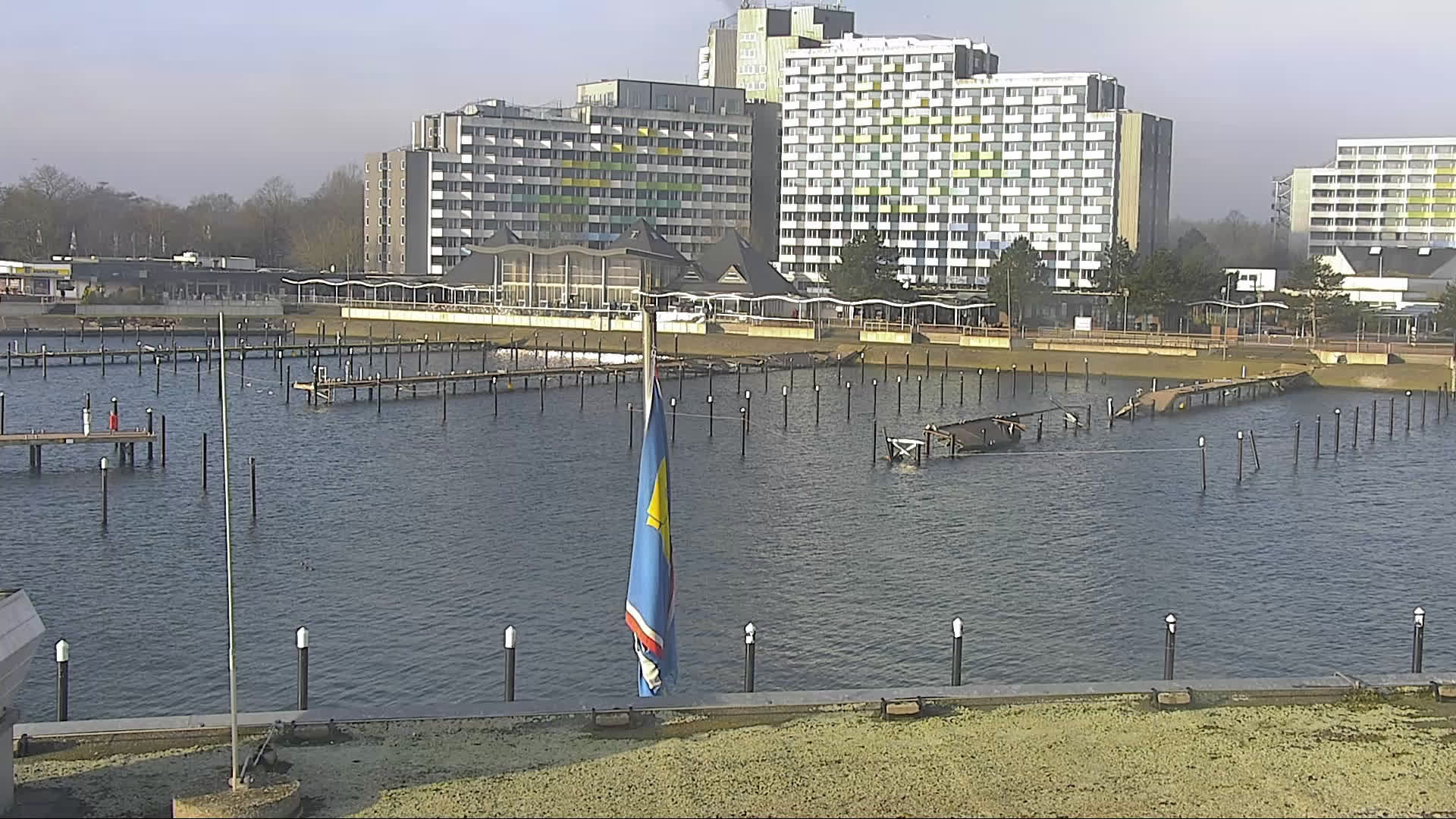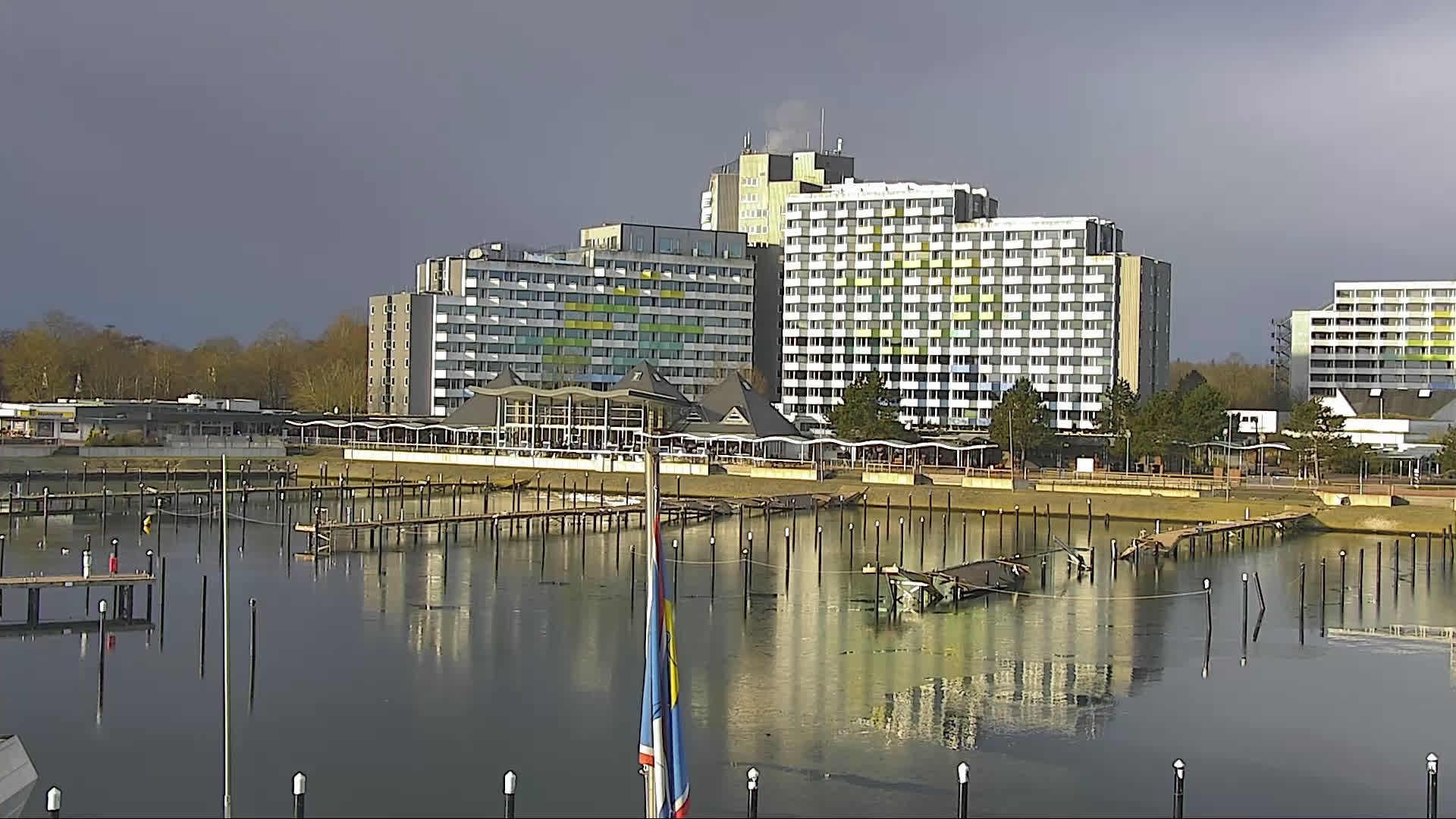 Ostseebad Damp, Deutschland - 41.8 km von Aroskobing: Yachthafen - Die Webcam am Ostsse Resort Damp zeigt den angrenzenden Yachthafen und die Strandpromenade. Das Bild wechselt alle paar Minuten, zwischen diesen beiden Standorten.