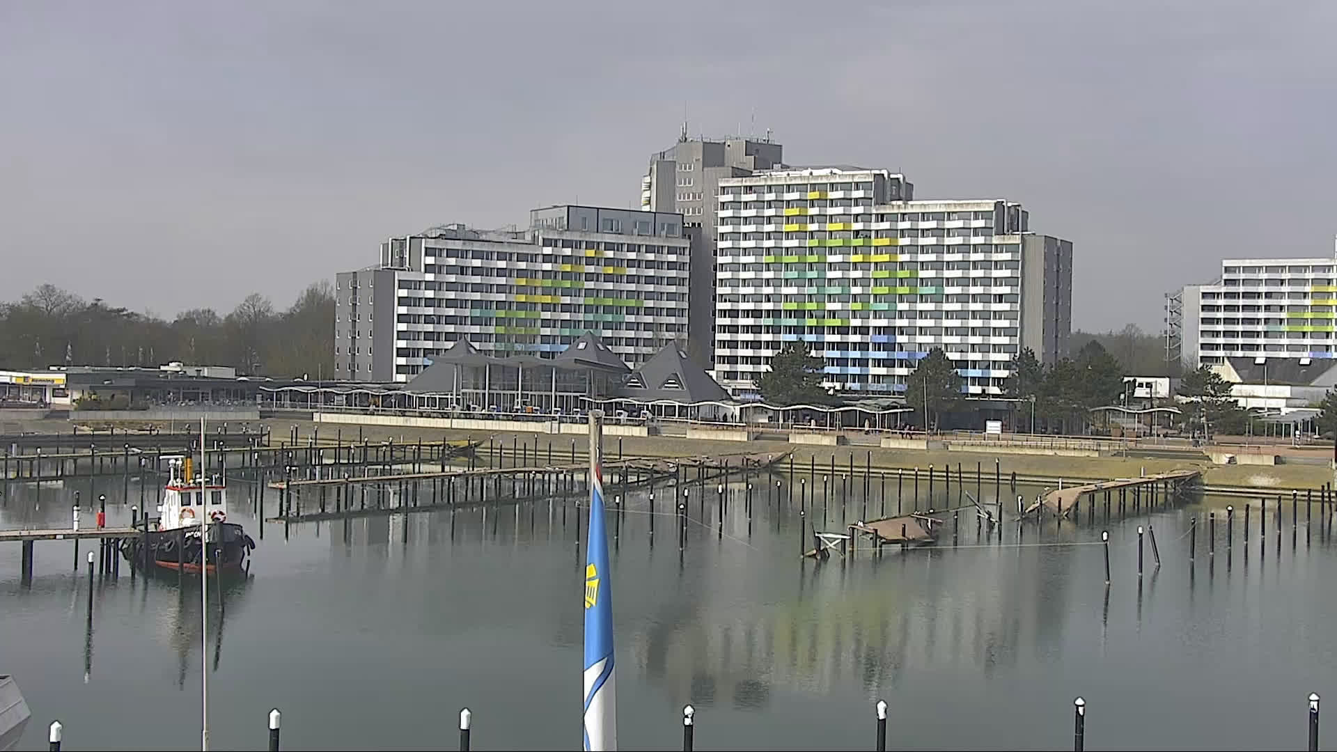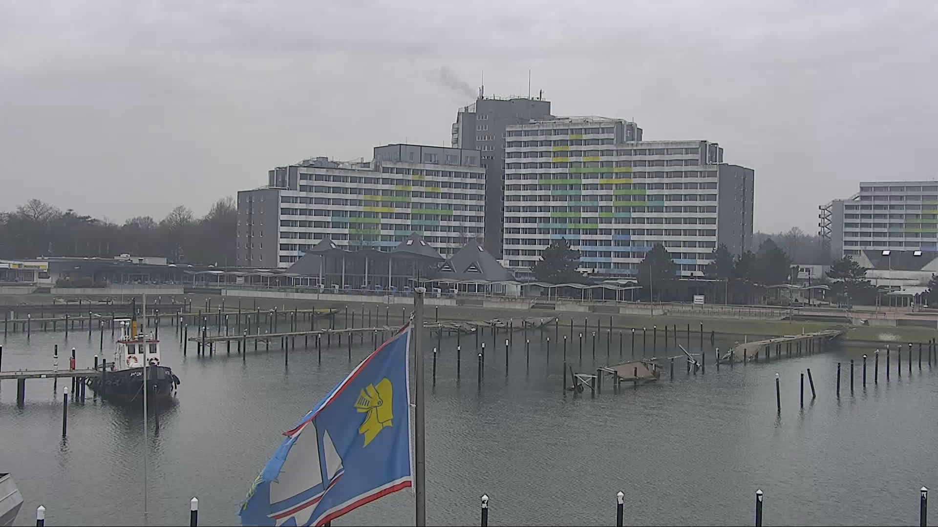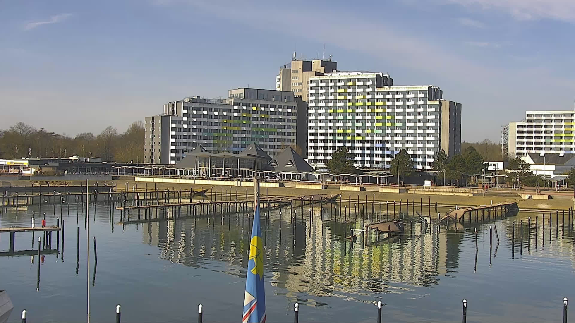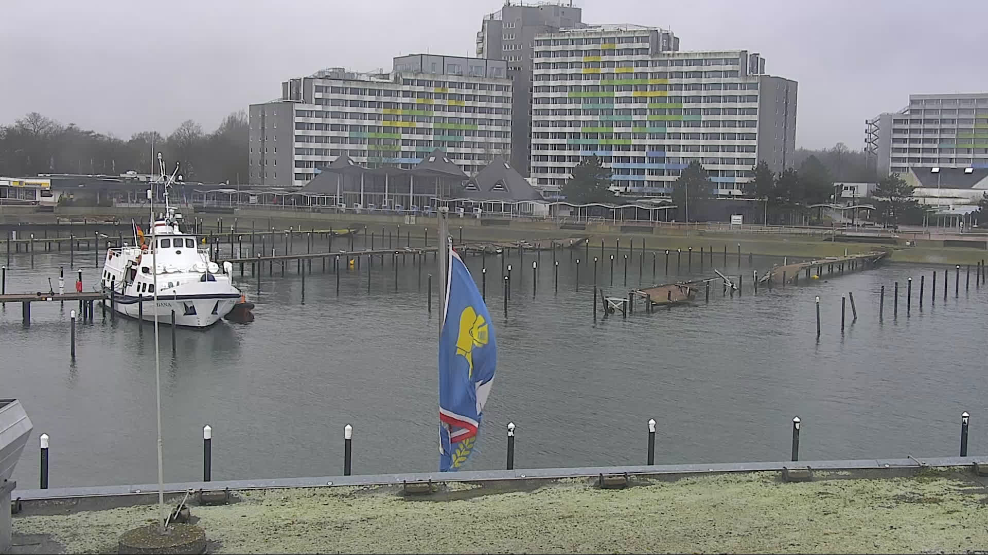 Ostseebad Damp, Deutschland - 41.8 km von Aroskobing: Yachthafen - Die Webcam am Ostsse Resort Damp zeigt den angrenzenden Yachthafen und die Strandpromenade. Das Bild wechselt alle paar Minuten, zwischen diesen beiden Standorten.