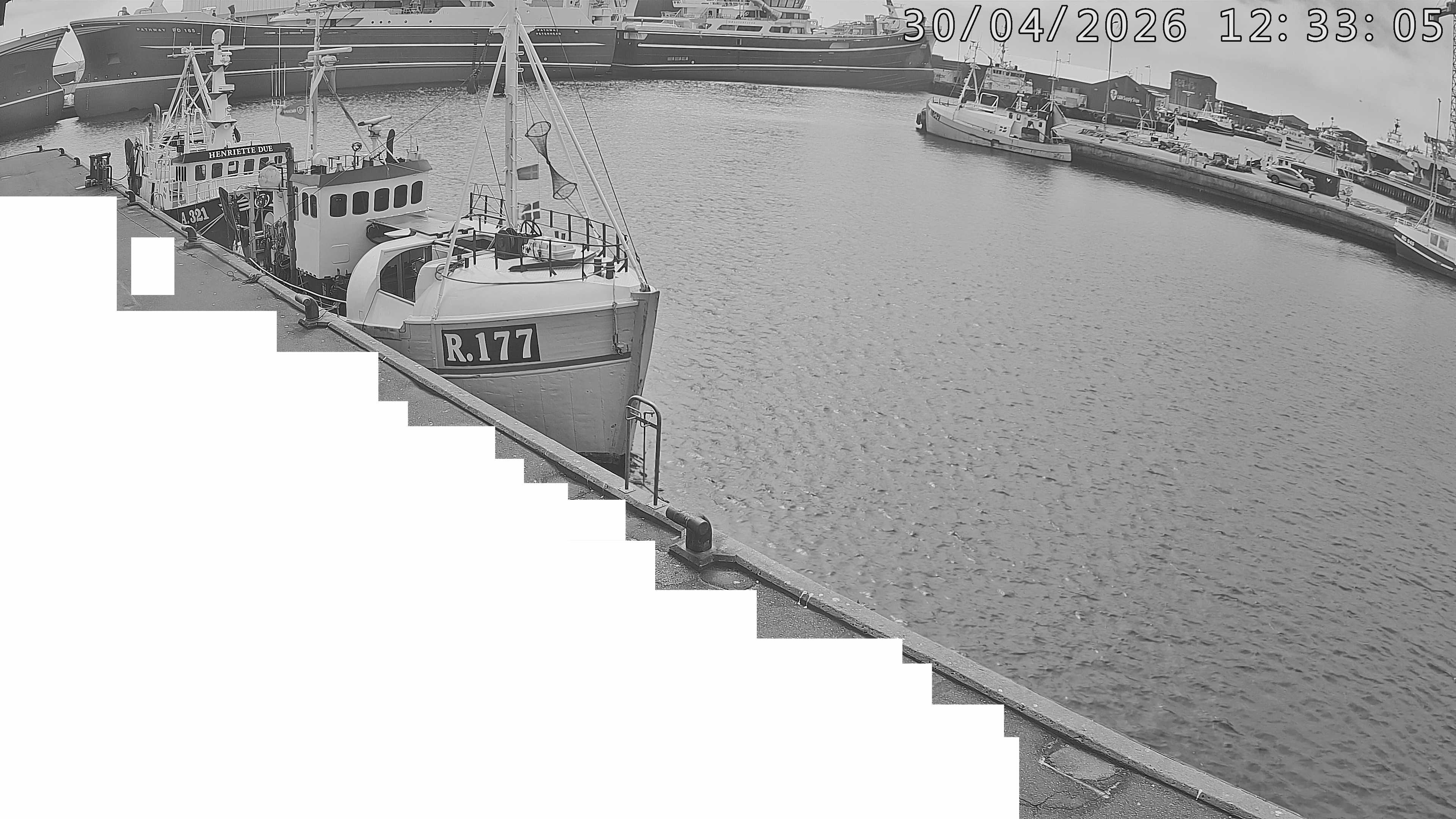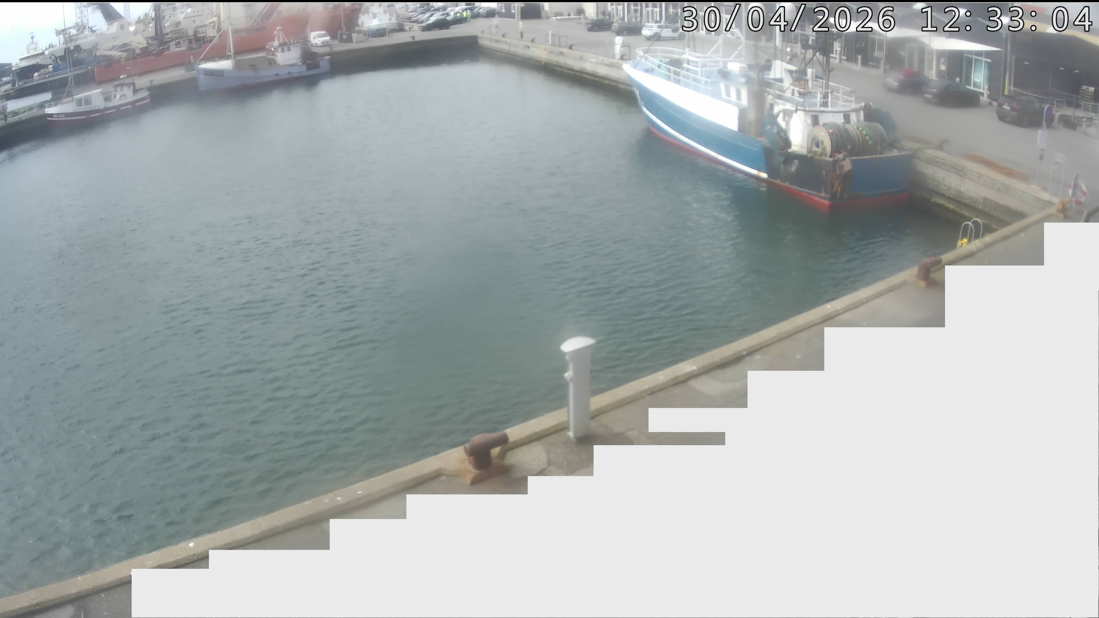 - Vorupør live Strandkamera mit Aussicht über die Fischerboote, Mole und den Strand.