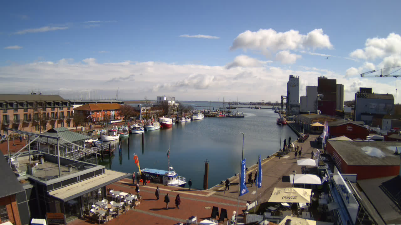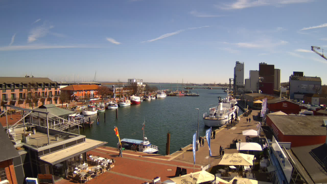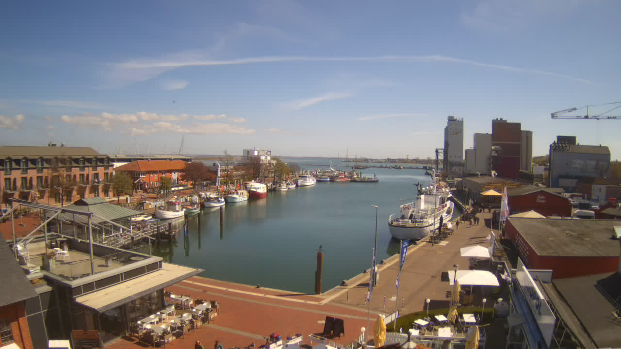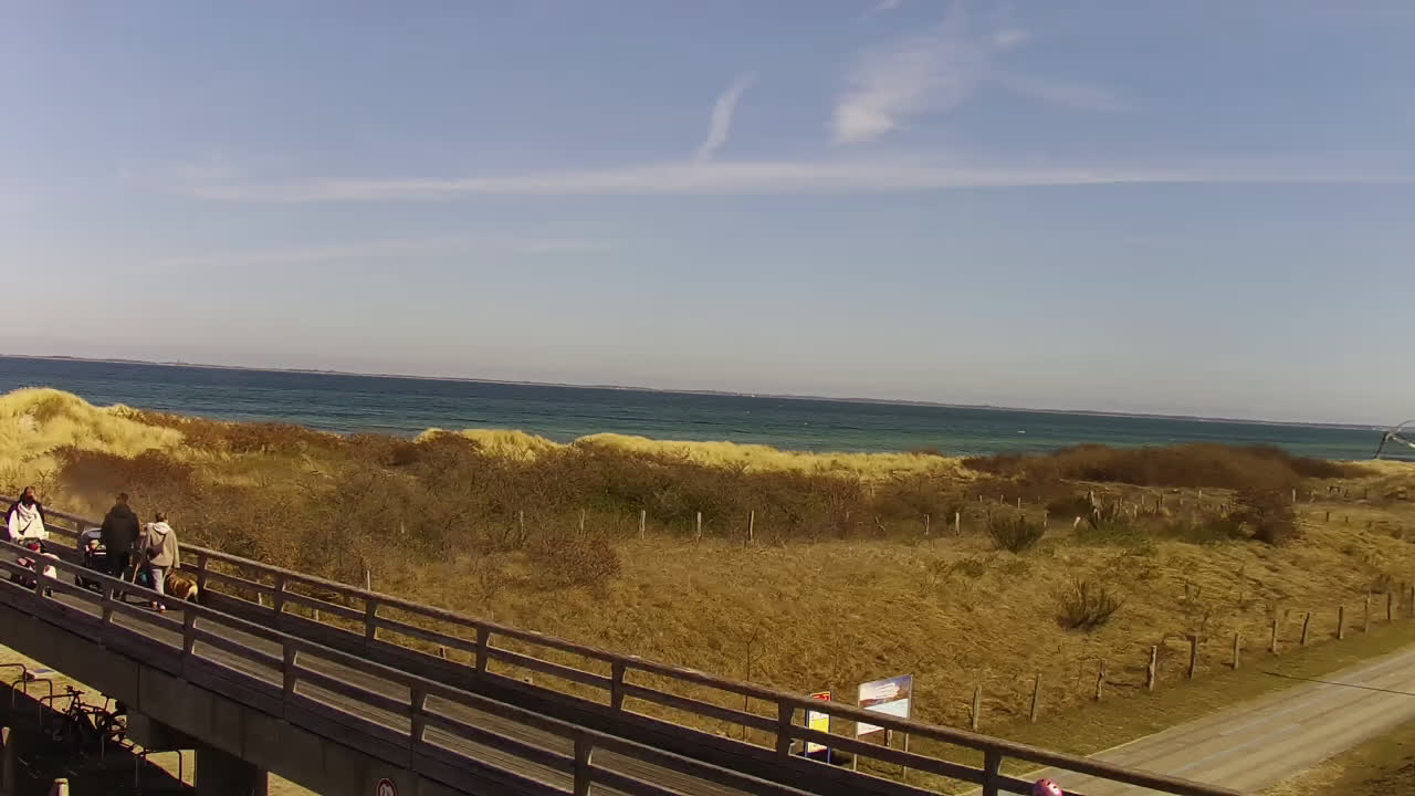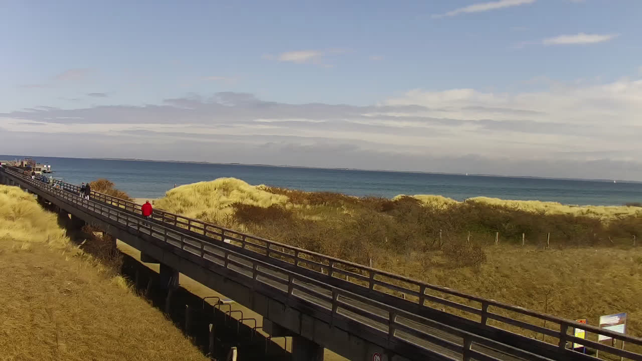 Heiligenhafen, Deutschland - 49.4 km von Lango: Panoramakamera Ferienhaus UTKIEK - Die Livecam befindet sich am 5-Sterne-Ferienhaus UTKIEK, dem neuen, barrierefreien Reethaus (138 qm) in exponierter Lage im Strand Resort Heiligenhafen. Unmittelbar an der Ostsee gelegen hat man von hier einen traumhaften Rundumblick auf die große Erlebnis-Seebrücke, dem neuen Highlight Heiligenhafens, auf Fehmarn mit der prägnanten Sundbrücke, auf das Naturschutzgebiet Graswarder mit seiner faszinierende Vogelwelt und den einzigartigen Villen sowie auf den beliebten 5-Sterne Marina Yachthafen mit seinem maritimen Flair.