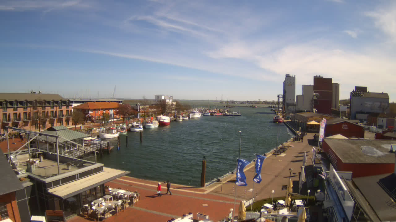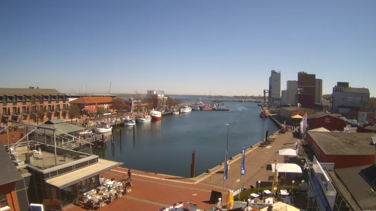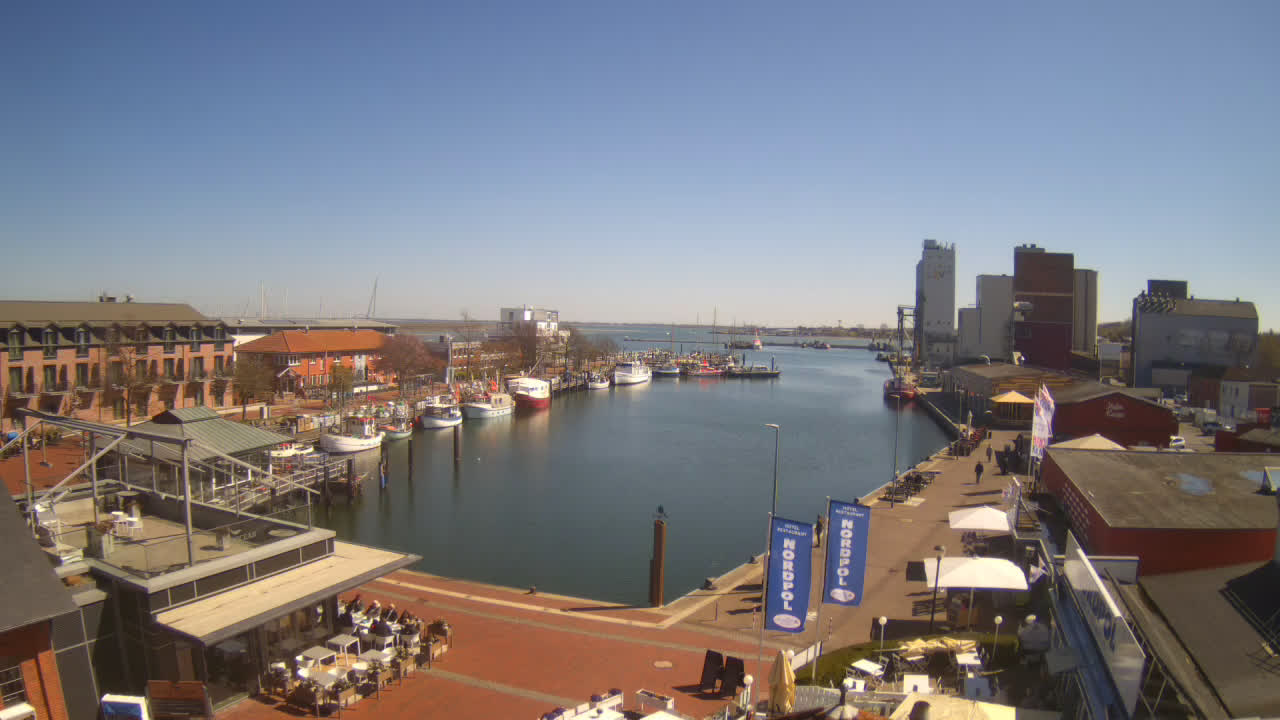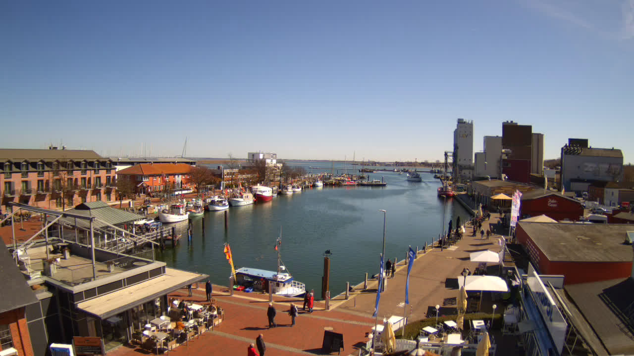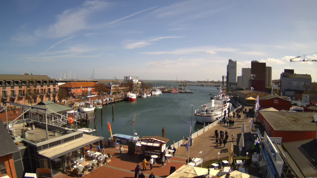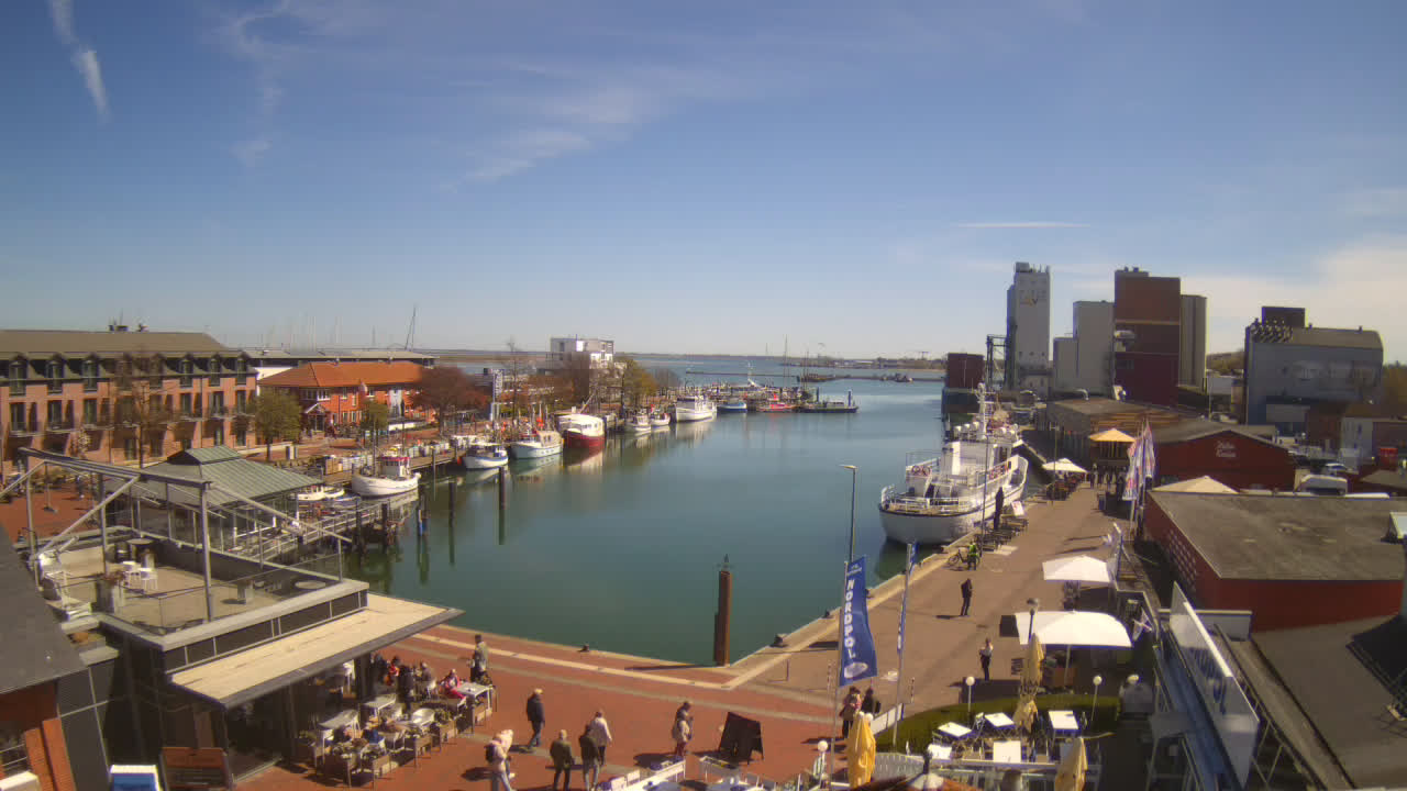 Heiligenhafen, Deutschland - 49.4 km von Lango: Panoramakamera Ferienhaus UTKIEK - Die Livecam befindet sich am 5-Sterne-Ferienhaus UTKIEK, dem neuen, barrierefreien Reethaus (138 qm) in exponierter Lage im Strand Resort Heiligenhafen. Unmittelbar an der Ostsee gelegen hat man von hier einen traumhaften Rundumblick auf die große Erlebnis-Seebrücke, dem neuen Highlight Heiligenhafens, auf Fehmarn mit der prägnanten Sundbrücke, auf das Naturschutzgebiet Graswarder mit seiner faszinierende Vogelwelt und den einzigartigen Villen sowie auf den beliebten 5-Sterne Marina Yachthafen mit seinem maritimen Flair.