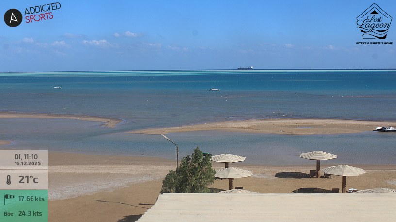 Safaga, Ägypten - 137.8 km von Al Kallahin: Safaga South - Die Webcam zeigt den Spot direkt vor der Station am Hotel Mirage Safaga Appartments & Suties.