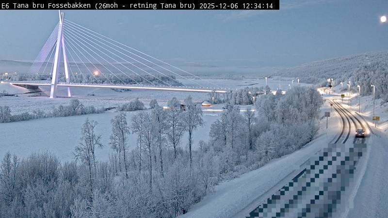 Tana, Norwegen - 43.7 km von Vetshikko: Verkehr E6 bei Tana Bru Fossebakken
