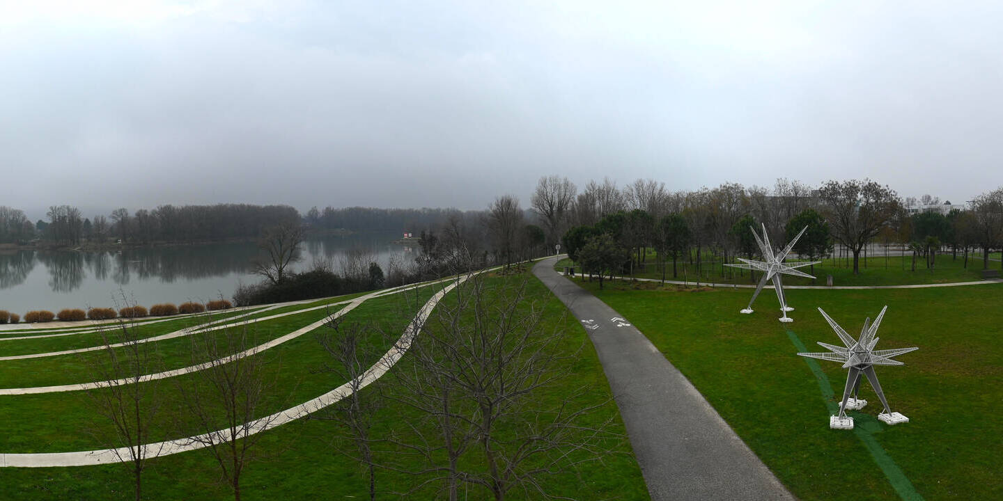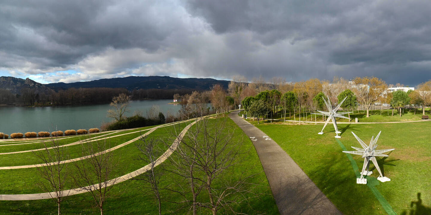 Saint-Priest, Frankreich - 41.1 km von Agnin: Bifurcation A43/A46, près de Saint-Priest, vue orientée vers Lyon - Ein Blick auf die aktuelle Verkehrssituation.