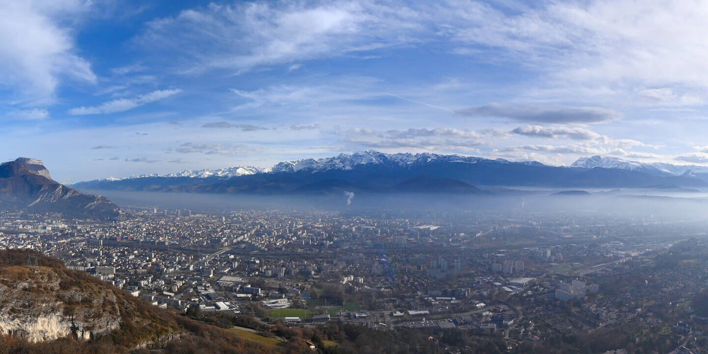 Voreppe, Frankreich - 29.7 km von Aiguebelette: A48 près de Grenoble, à l'entrée de la ville, vue orientée vers Grenoble - Ein Blick auf die aktuelle Verkehrssituation.