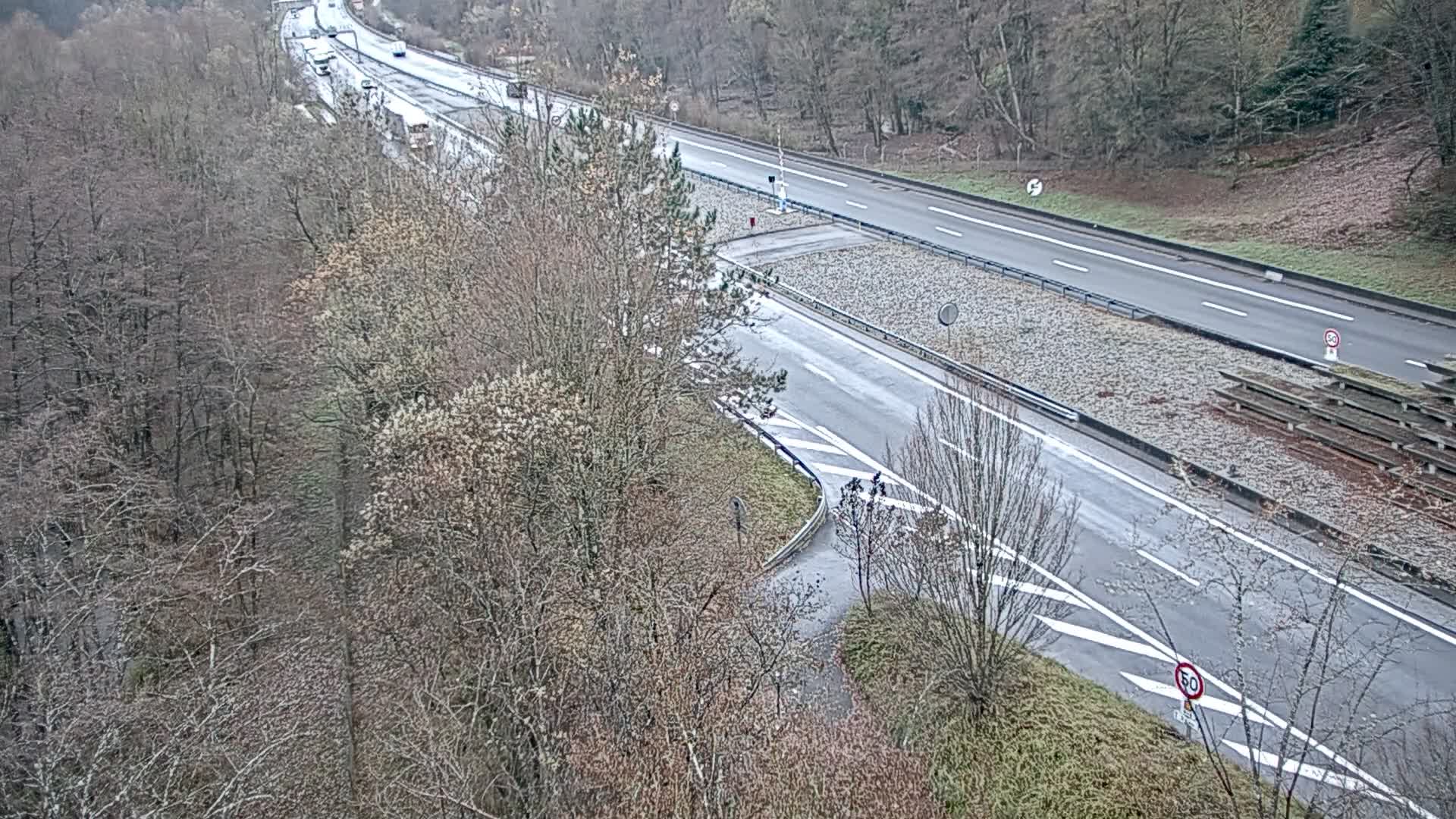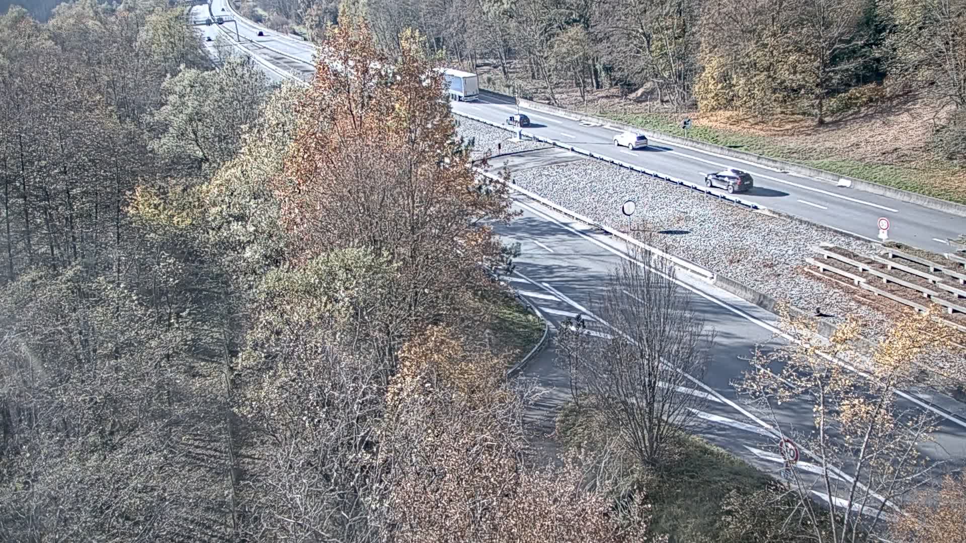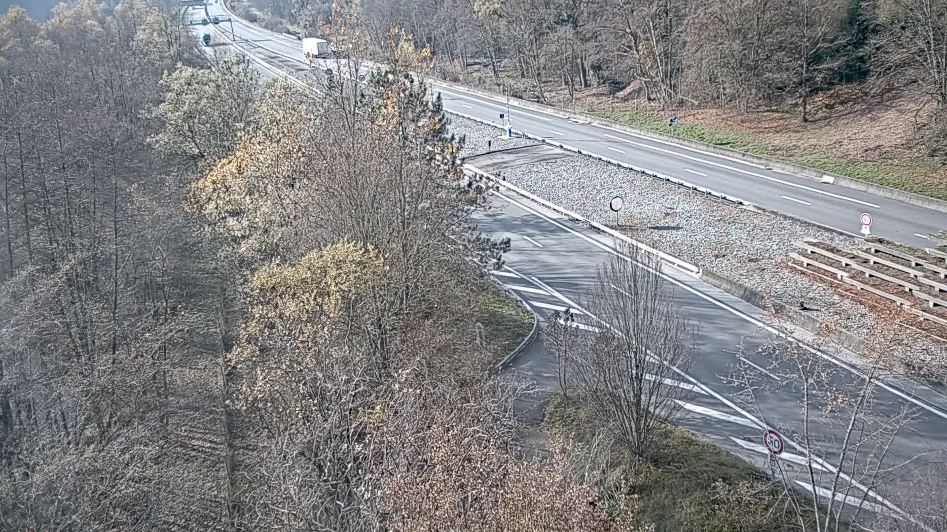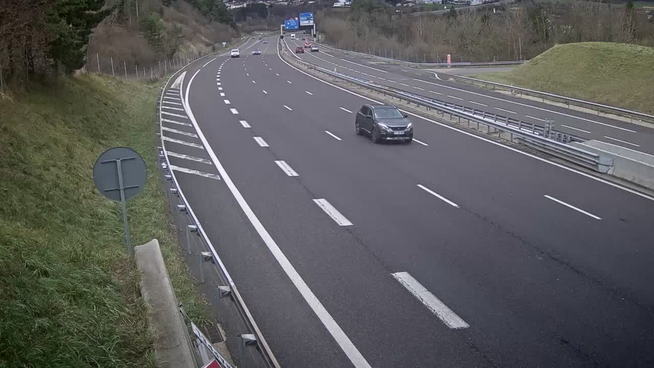 Nantua, Frankreich - 48.9 km von Albens: A40 près de Nantua, Descente de Maillat, près d'Oyonnax et Nantua, vue orientée vers Mâcon - Ein Blick auf die aktuelle Verkehrssituation.