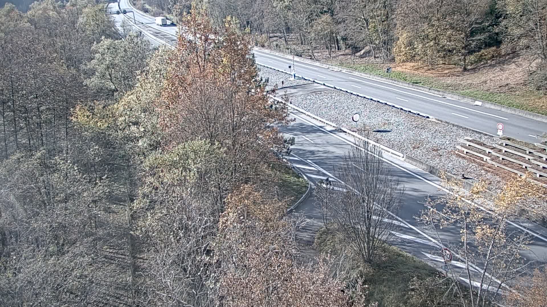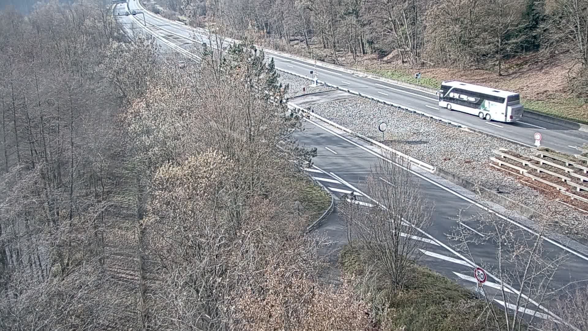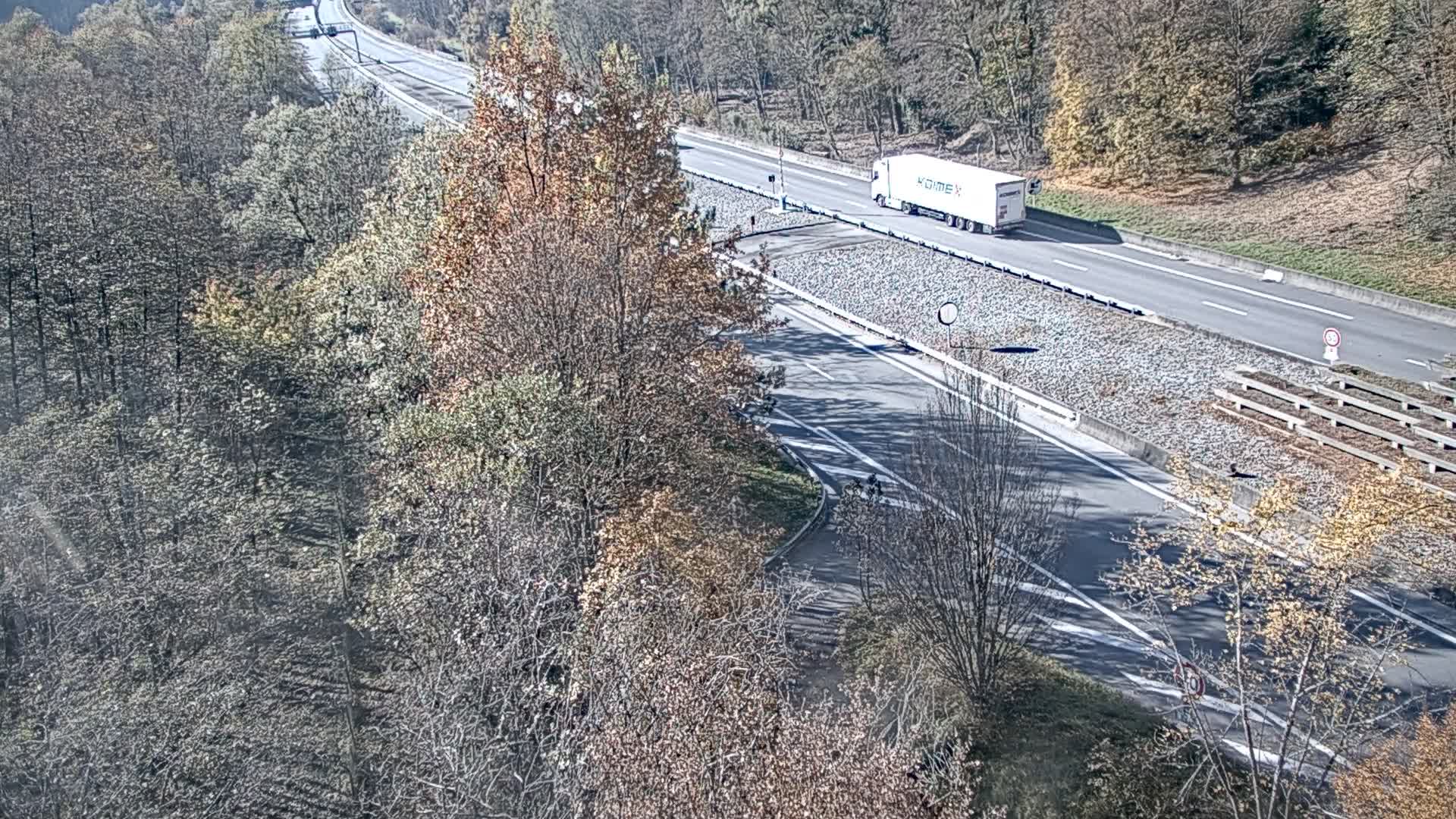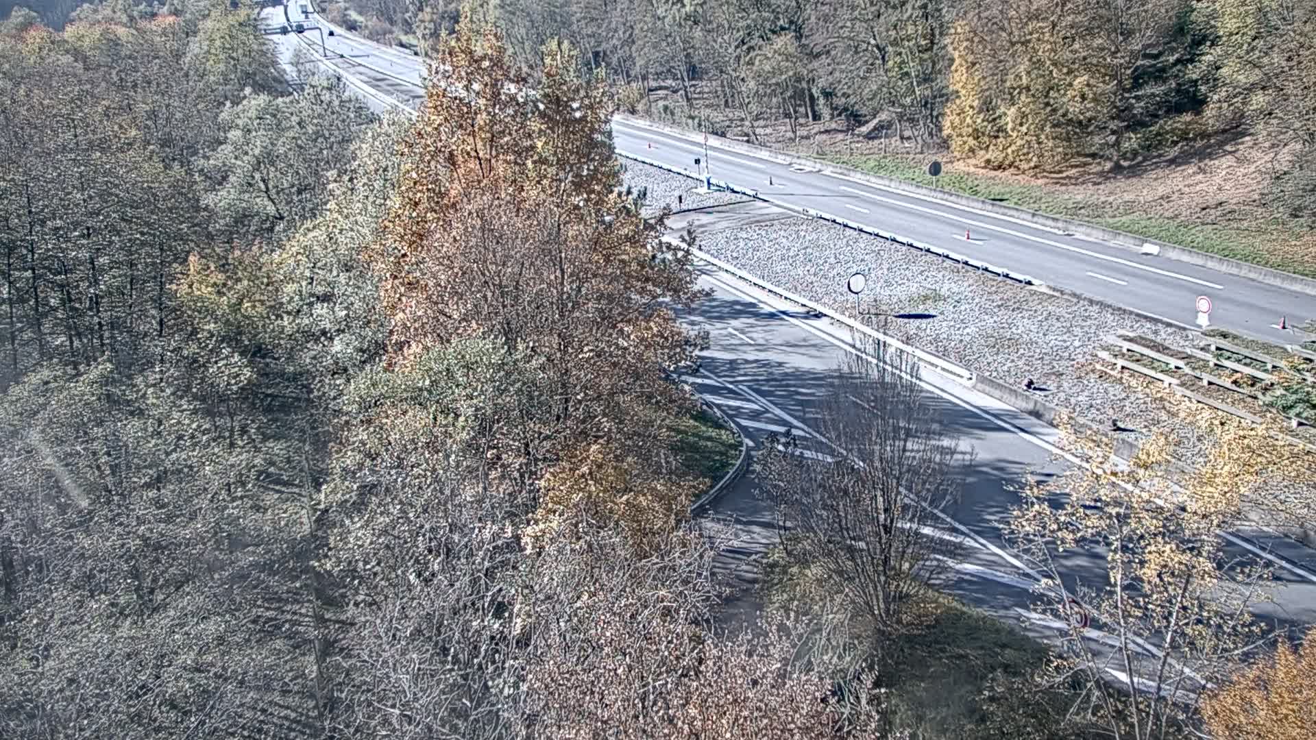 Nantua, Frankreich - 48.9 km von Albens: A40 près de Nantua, Descente de Maillat, près d'Oyonnax et Nantua, vue orientée vers Mâcon - Ein Blick auf die aktuelle Verkehrssituation.