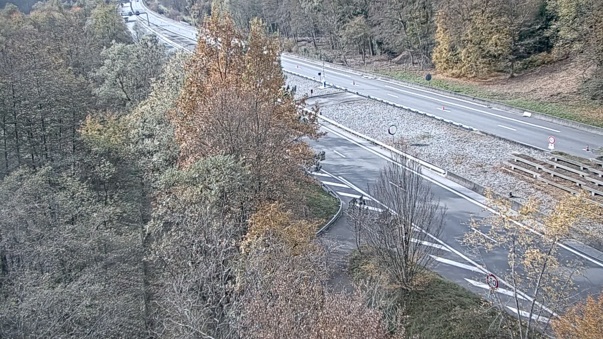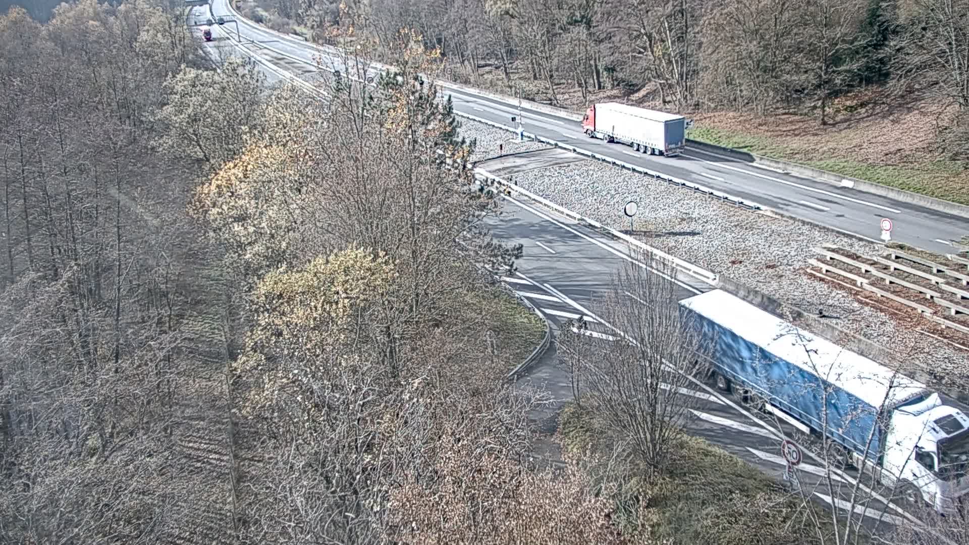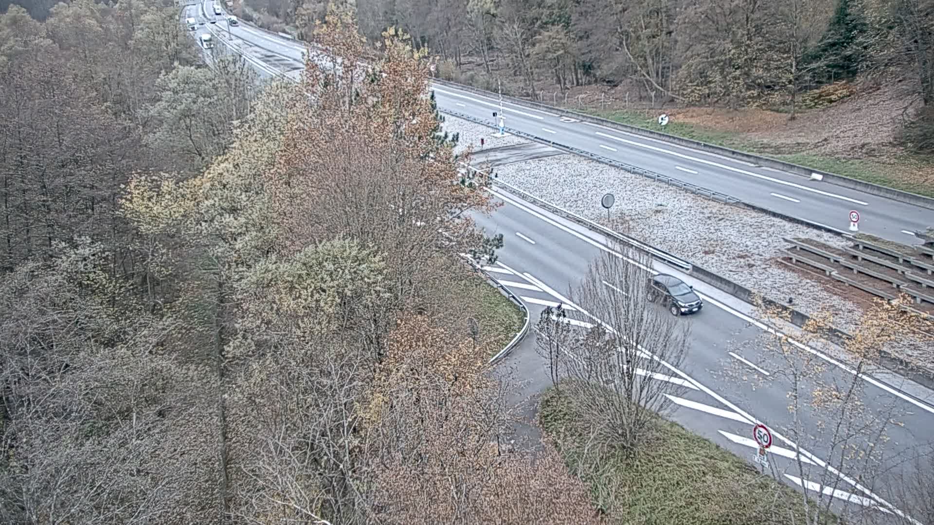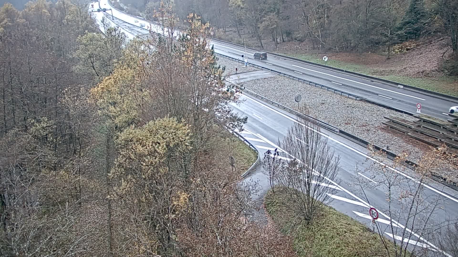 Nantua, Frankreich - 48.9 km von Albens: A40 près de Nantua, Descente de Maillat, près d'Oyonnax et Nantua, vue orientée vers Mâcon - Ein Blick auf die aktuelle Verkehrssituation.