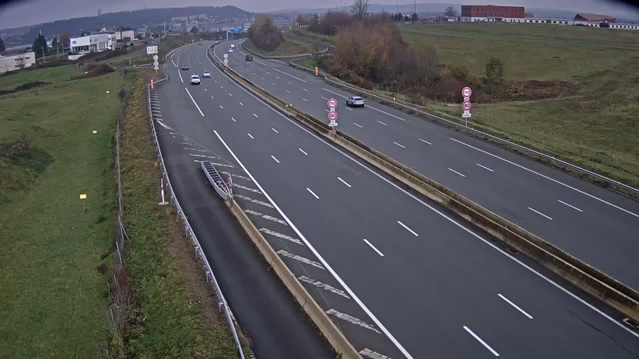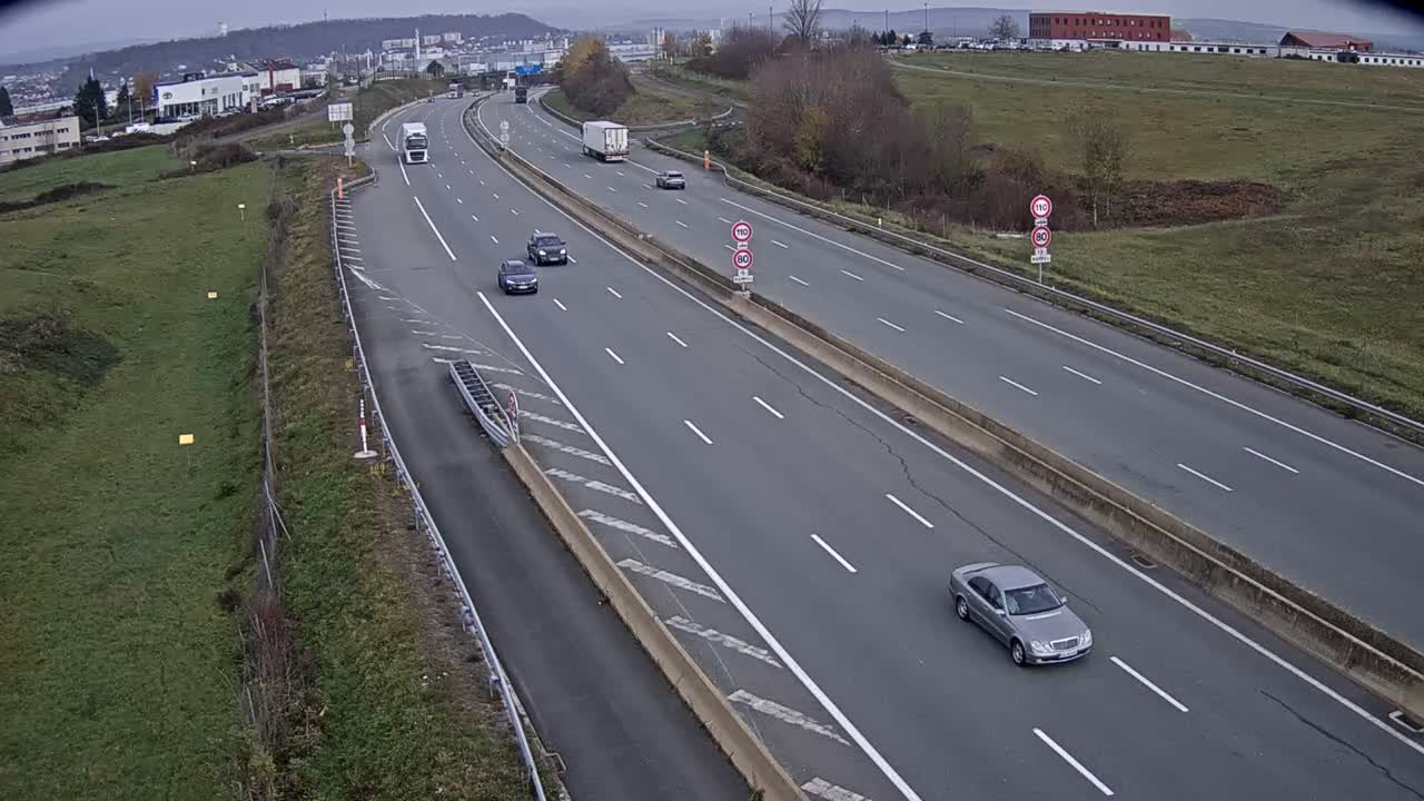 Lutterbach, Frankreich - 11.7 km von Alt-Thann: A36 près de Lutterbach et de Mulhouse, vue orientée vers Mulhouse - Ein Blick auf die aktuelle Verkehrssituation.