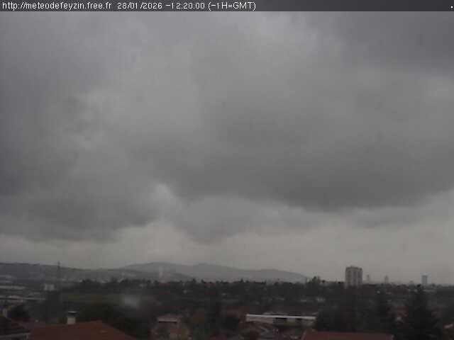 Lyon, Frankreich - 33.9 km von Assailly: A46 près de Lyon, à proximité de la bifurcation A46/A42, en périphérie de Lyon Nord, vue orientée vers Lyon - Ein Blick auf die aktuelle Verkehrssituation.