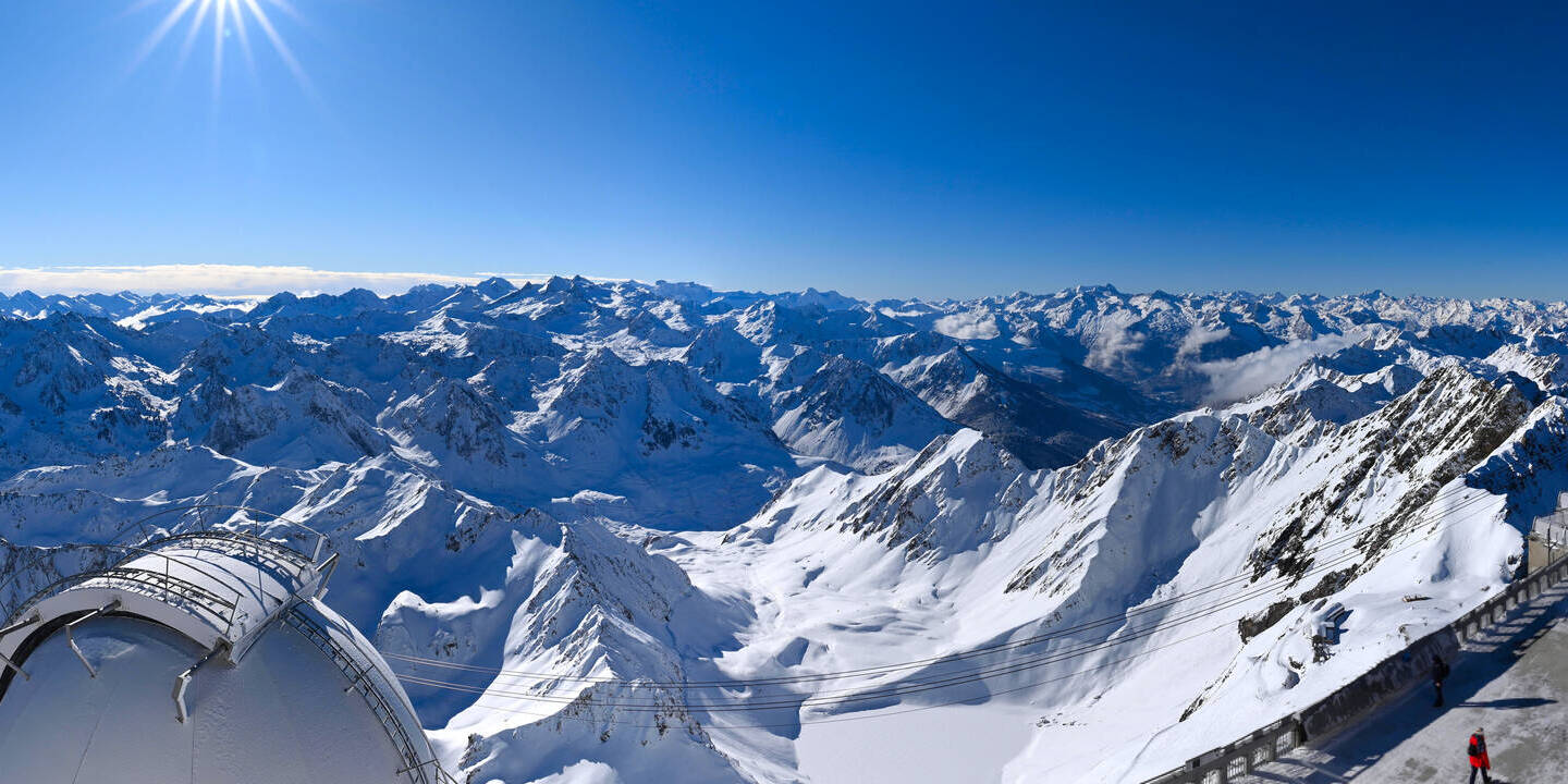 Pic du Midi, Frankreich - 28.5 km von Augirein: Panoramique HD - Ein Video aus Bagnères-de-Bigorre mit aktuellen Wetterdaten und Links zu weiteren Videos.
