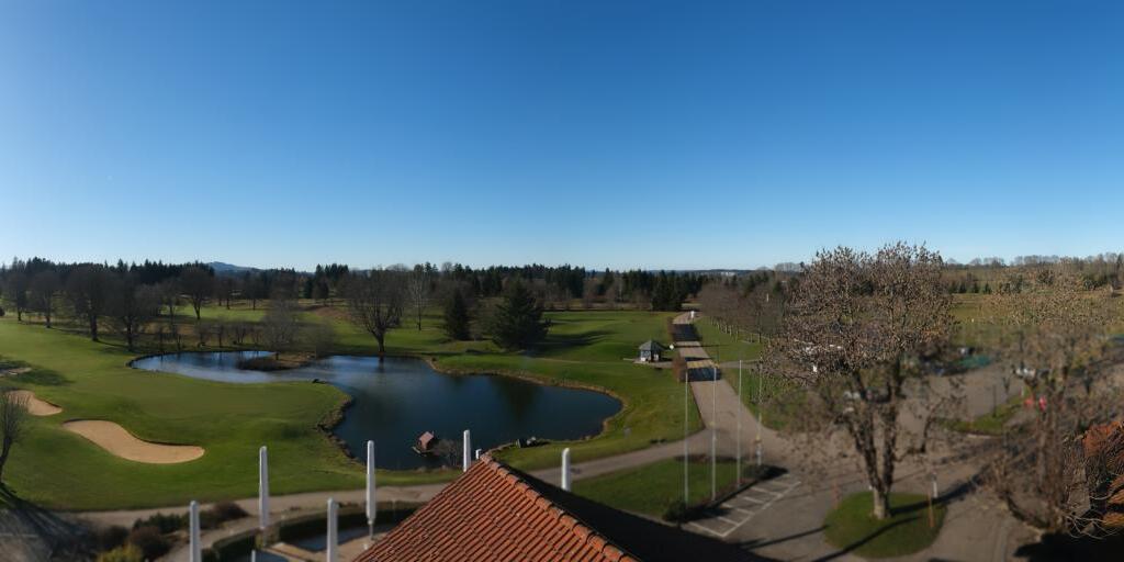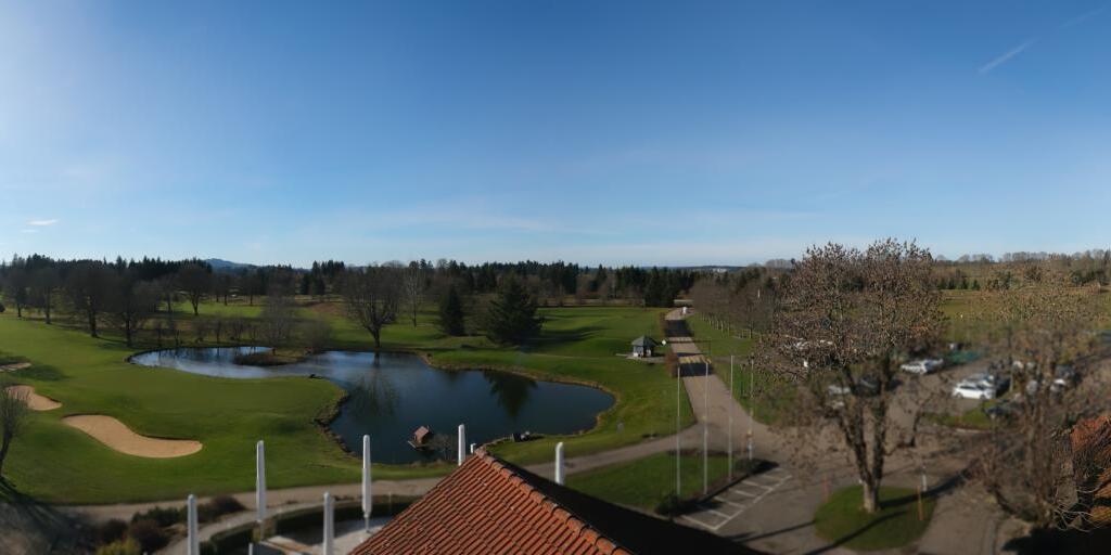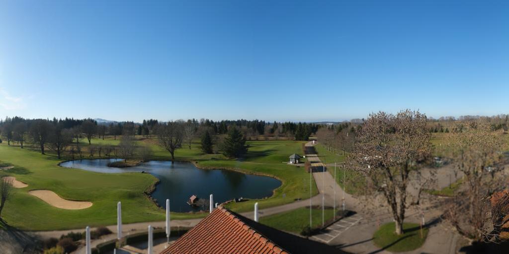 Les Bois, Schweiz - 45.5 km von Autechaux: 230°-Panorama Jura - Golf Club Les Bois
