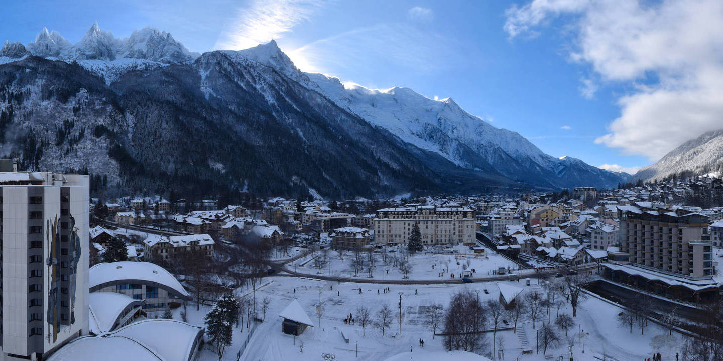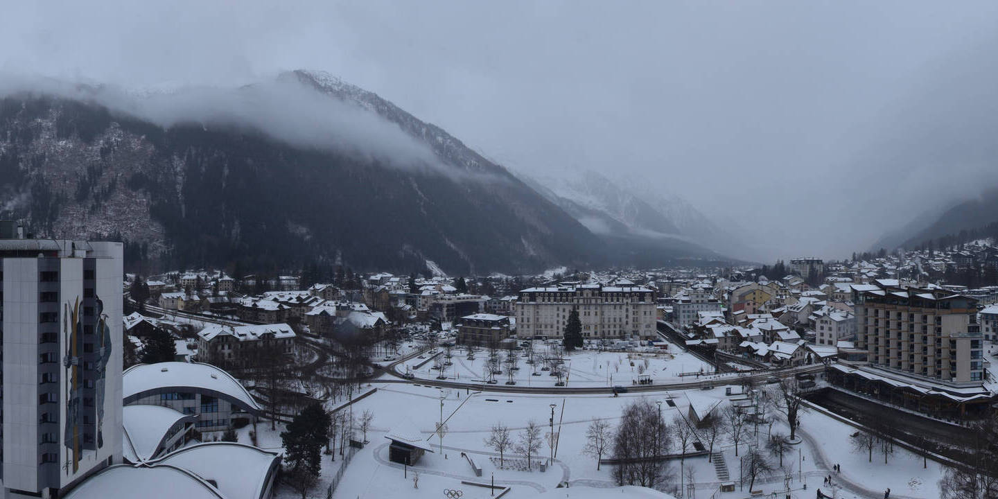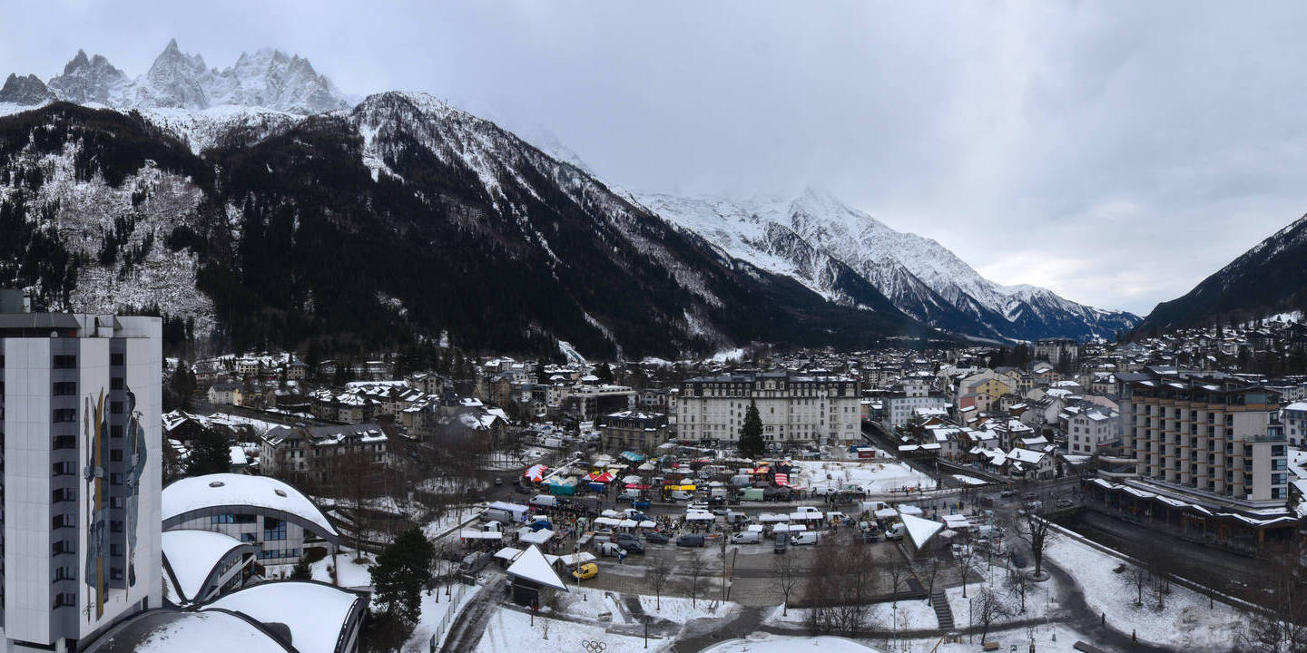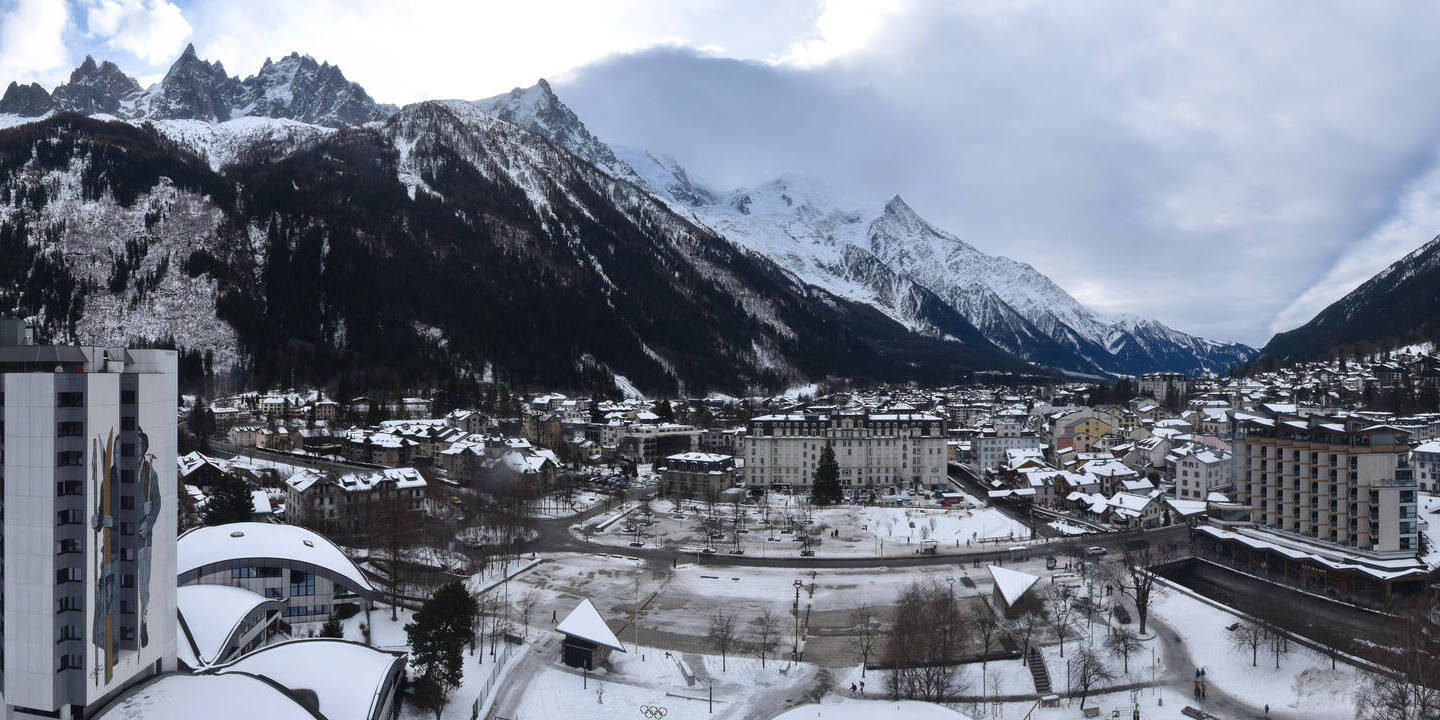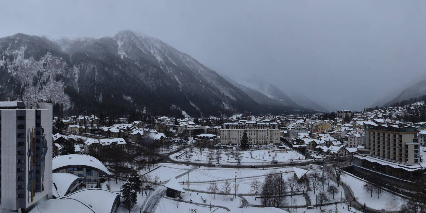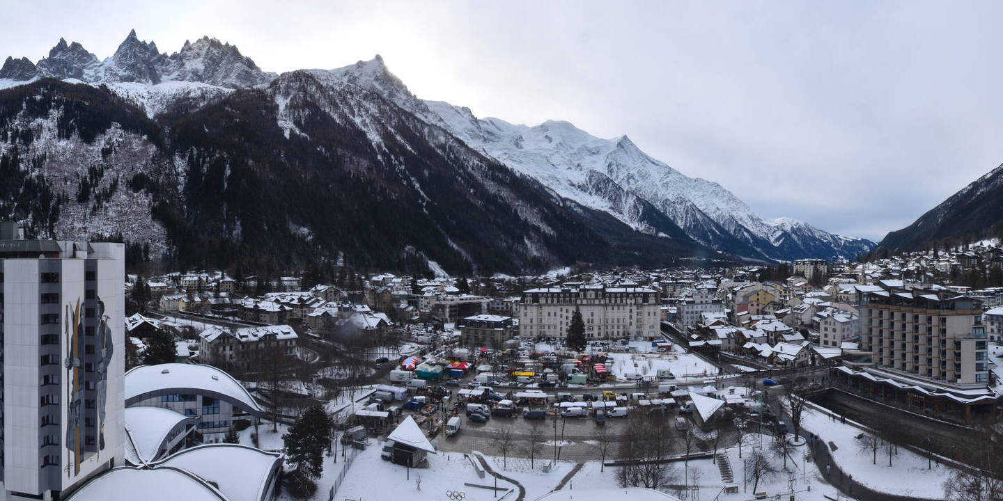 Chamonix-Mont-Blanc, Frankreich - 1 km von Chamonix: Blick über Chamonix