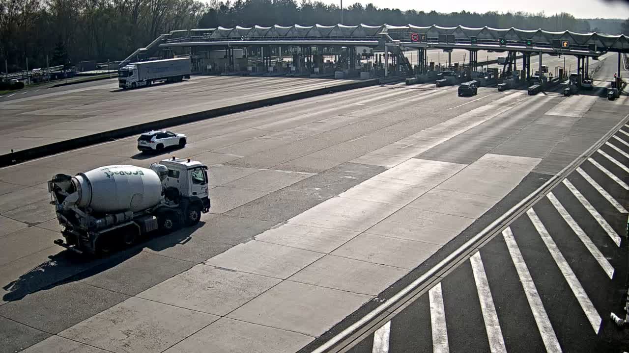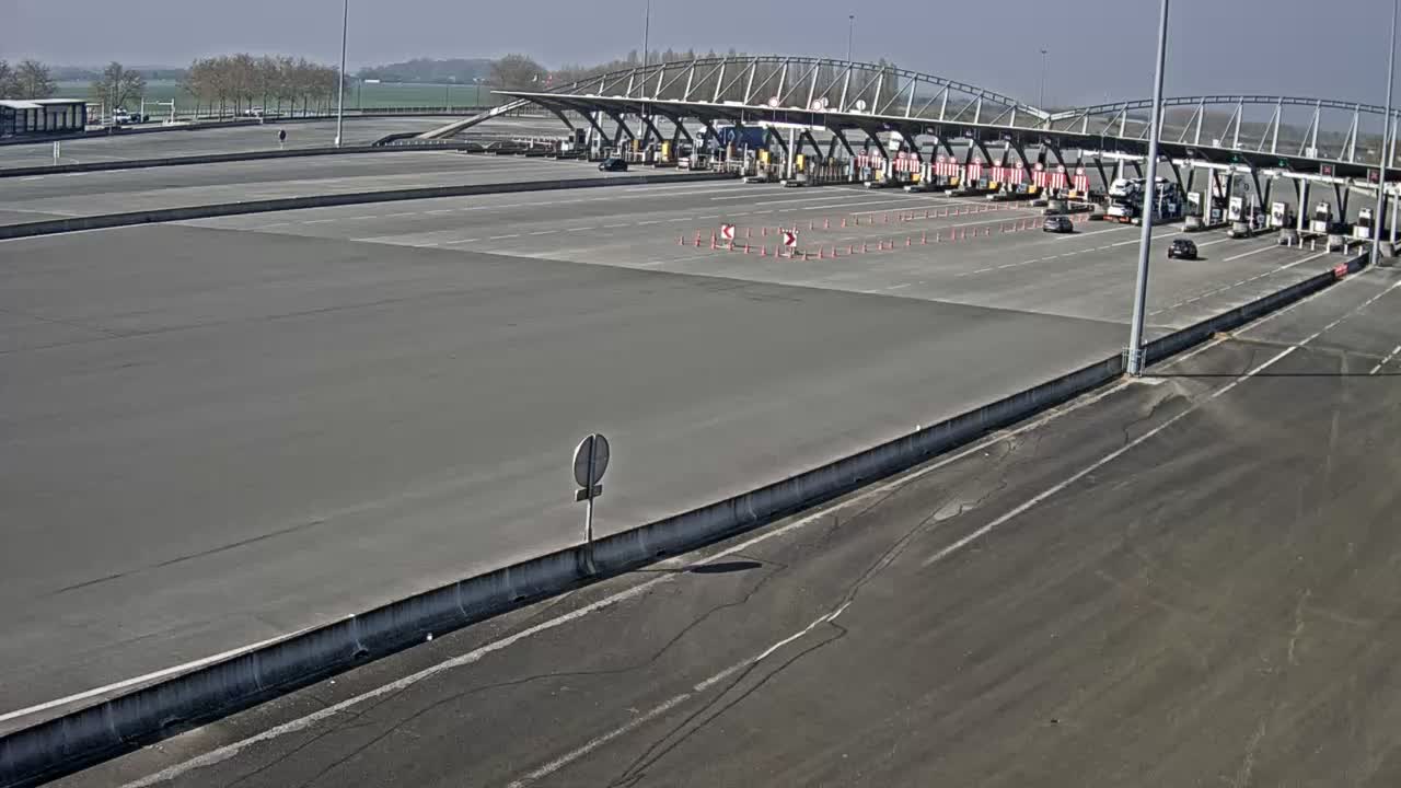 Melun, Frankreich - 44.2 km von Egreville: A5 près de Melun, Barrière de péage des Eprunes, vue orientée vers Langres - Ein Blick auf die aktuelle Verkehrssituation.