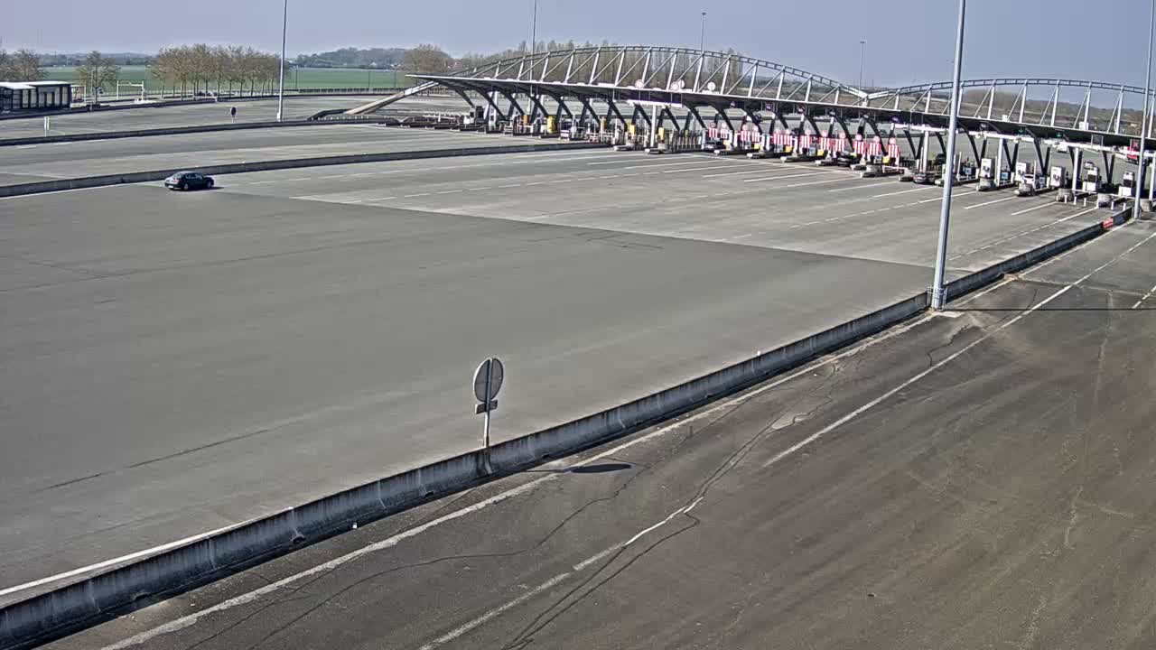 Melun, Frankreich - 43.2 km von Fontaine-Ramee: A5 près de Melun, Barrière de péage des Eprunes, vue orientée vers Langres - Ein Blick auf die aktuelle Verkehrssituation.
