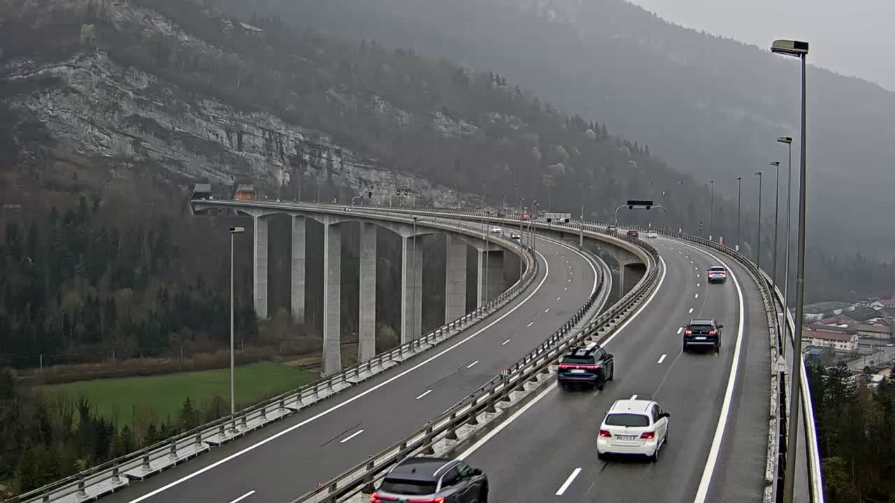 Nantua, Frankreich - 26 km von Lect: A40 près de Nantua, Tunnel de Chamoise à proximité de Nantua, vue orientée vers Mâcon - Ein Blick auf die aktuelle Verkehrssituation.