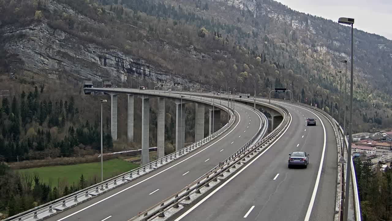 Nantua, Frankreich - 39.9 km von Lompnas: A40 près de Nantua, Descente de Maillat, près d'Oyonnax et Nantua, vue orientée vers Mâcon - Ein Blick auf die aktuelle Verkehrssituation.