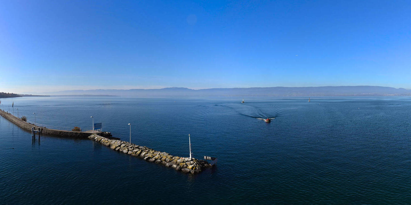 Morges, Schweiz - 20.1 km von Yvoire: 250°-Panorama Hafen