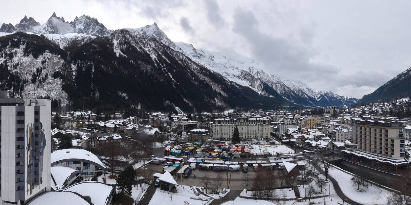 Chamonix-Mont-Blanc, Frankreich - 5.9 km von les Chozalets: Blick über Chamonix